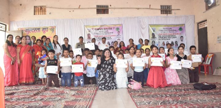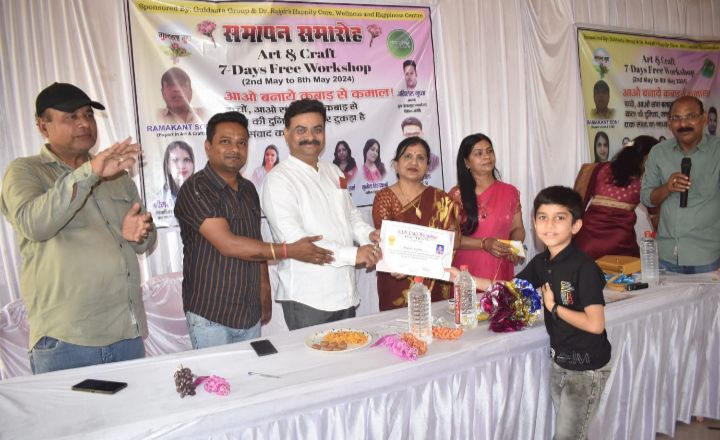 आओ बनाए कबाड़ से कमल आर्ट एंड क्राफ्ट सात दिवसीय फ्री वर्कशॉप का समापन हुआ ,इस अवसर पर सभी बच्चों ने बढ़ चढ़कर भाग लिया सभी के अभिभावक समय पर मौजूद हो गए थे यह कार्यक्रम सुबह 9:00 बजे से शुरू होकर 11:00 बजे समाप्त हुआ इस कार्यक्रम को गुलदस्ता ग्रुप संस्थापिका एवं अध्यक्ष रीता राजगीर एंड, happily cure के संस्थापिका डॉक्टर सुरभि राजगीर के द्वारा आयोजित किया गया था, सर्वप्रथम छत्तीसगढ़ महतारी पर माल्यार्पण किया गया, एवम दीप अर्पण कर कार्यक्रम की शुरुआत की गई मंच संचालन रीता राजगीर जी के द्वारा किया गया, उपरोक्त कार्यक्रम में मुख्य अतिथि बृजेंद्र शुक्ला गुरुकुल आईसीएस डायरेक्टर एवं चीफ ट्रेनर थे एवं विशिष्ट तिथि जूना बिलासपुर व्यापारी संघ के अध्यक्ष अखिलेश गुप्ता (बंटी) ने कार्यक्रम में उपस्थित होकर कार्यक्रम की शोभा बढ़ाई 7 दिनों तक अपना भरपूर सहयोग श्री रमाकांत सोनी सर जी ने बच्चों को कबाड़ से कमाल सीखाने में कोई कसर नहीं छोड़ी , मेहनत की एवं बच्चों को बेहतरीन तरीके से आर्ट एंड क्राफ्ट का प्रशिक्षण दिया मुख्य अतिथि श्री बृजेंद्र शुक्ला सर जी ने इस तरह के आयोजन की प्रशंसा की और फ्री वर्कशॉप बिलासपुर में पहली बार लगाया गया है इस तरह का उन्होंने कहा साथ ही ग्रुप की समस्त सदस्यों को इस तरह का आयोजन करने के लिए भूरी भूरी प्रशंसा की और अपना भरपूर सहयोग देने के बाद भी कहीं बच्चे जो आजकल मोबाइल और टीवी देख कर अपना समय व्यतीत करते हैं और दिशाहीन हो रहे हैं बच्चे, इस तरह के वर्कशॉप होने से बच्चों को बौद्धिक विकास तो होगा ही शारीरिक विकास भी होता है इसलिए इस तरह के आयोजन गुलदस्ता ग्रुप की द्वारा करने पर बहुत बधाई दी, आगे भी इस तरह के आवेदन करने के उन्होंने सलाह दी, कार्यक्रम के सफल बनाने में पूर्ण सहयोग दिया बच्चों को आगे भविष्य में जो भी मेरी जरूरत पड़े मैं उनको भरपूर का सहयोग करूंगा, शुक्ला सर ने बताया कि इस तरह के आयोजन में अभिभावक को चाहिए कि वह बच्चों को समझाएं कि खाली समय का इस्तेमाल किस तरह किया जाता है इस तरह के आयोजन शहर में होते हैं तो बच्चों को वहां अवश्य भेजना चाहिए, पेरेंट्स ही बच्चों को आगे बढ़ाए, घर से ही शुरुआत करें तभी बच्चे कुछ करने के लिए आगे मेहनत कर सकते हैं, बच्चे भविष्य के कर्ताधर्ता होते हैं यही हमारे भविष्य के निर्माता है इसलिए इनका शारीरिक विकास के साथ मानसिक विकास होना बहुत जरूरी है और इस तरह की गतिविधियों होने से बच्चे सही दिशा में आगे बढ़ते हैं, मुख्य अतिथि के द्वारा सभी बच्चों को गुलदस्ता संस्था के द्वारा प्रमाण पत्र से सम्मानित किया गया, अखिलेश गुप्ता जी ने बताया कि इतने कम समय में इस वर्कशॉप में 40 बच्चों ने जो भाग लिया वह यह संस्था की प्रथम प्रयास की उपलब्धि का एक प्रत्यक्