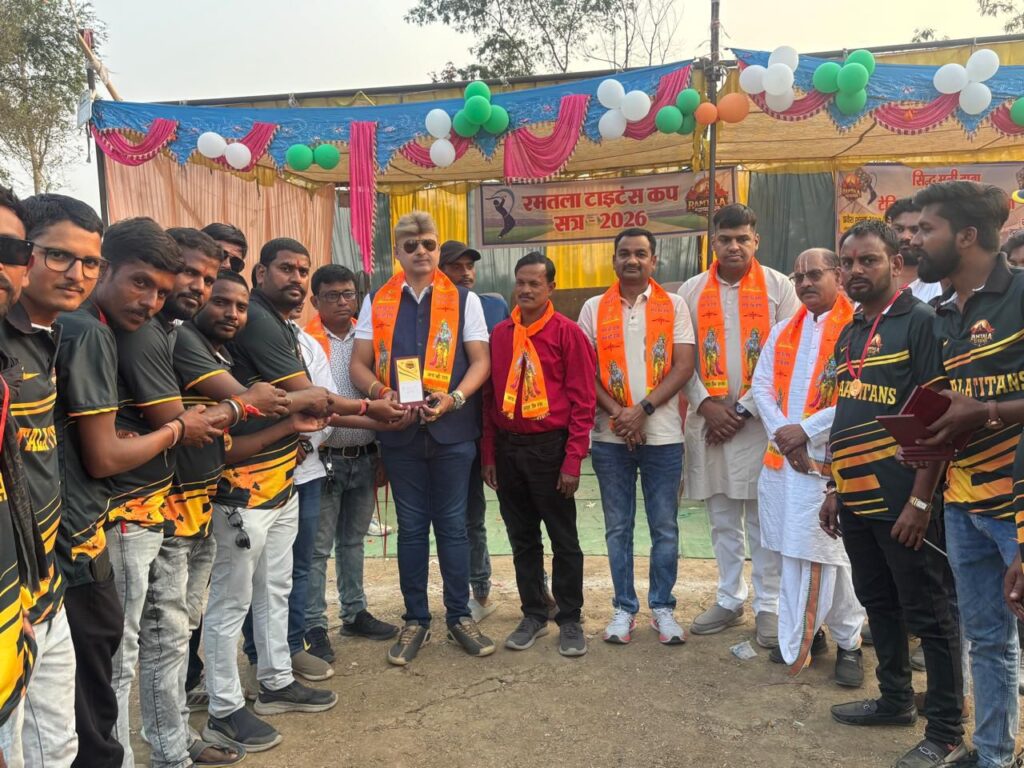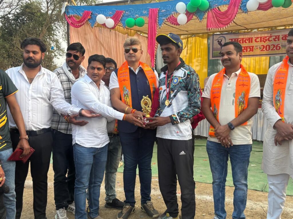 ठान लो तो जीत होगी – त्रिलोक चंद्र श्रीवास, (रमतला में टाइटंस क्लब पुरस्कार वितरण समारोह संपन्न) ठान लो तो जीत होगी, मान लो तो हार होगी यह लाइन जिसने भी कहा है वह 100% सत्य है, जीवन में क्रिकेट हो खेल हो या कोई भी चीज हो प्रतियोगी परीक्षा हो सार्वजनिक जीवन की किसी भी क्षेत्र में कोई भी चीज यदि आप ठान लेते हैं, उसके लिए सामूहिक अथक प्रयास करते हैं, तो आपकी जीत सुनिश्चित होती है, यह बातें बिलासपुर जिले के लोकप्रिय वरिष्ठ कांग्रेस नेता श्री त्रिलोक चंद्र श्रीवास, राष्ट्रीय समन्वयक – अखिल भारतीय कांग्रेस कमेटी ने बेलतरा विधानसभा क्षेत्र के ग्राम रमतला में आयोजित टाइटंस कप क्रिकेट टूर्नामेंट के फाइनल मुकाबले में पुरस्कार वितरण समारोह में मुख्य अतिथि के रूप में व्यक्त किया, फाइनल प्रतियोगिता क्रिकेट टीम विजय रही जिसे मुख्य अतिथि त्रिलोक श्रीवास औऱ अन्य अतिथियों के द्वारा 51000 रुपये नगद एवं कप से पुरस्कृत किया गया, उपविजेता टीम को ₹25000 नगद एवं कब से भी सम्मानित किया गया एवं मैन ऑफ द सीरीज मैन ऑफ द टूर्नामेंट सहित दर्जनों आकर्षक इनाम दिए गए इस कार्यक्रम में आयोजन समिति एवं ग्राम वासियों के द्वारा आतिशबाजी ढोल ताशे से मुख्य अतिथि श्री त्रिलोक चंद्र श्रीवास का जबरदस्त किया गया, कार्यक्रम मे विशिष्ट अतिथि के रूप में राजेंद्र साहू अंकित गौरहा शिवराज साहू भाजपा नेता राजेश तिवारी, सरपंच राजकुमार कोरी पंडित जितेन्द्र शर्मा जीतू, ओंकारधर शर्मा उपस्थित थे, इस अवसर पर आयोजन समिति के सूरज दुबे, जीतू चौहान, दुष्यंत साहू, उप सरपंच वीरेंद्र सूर्यवंशी लालi पांडे, दीनबंधु पांडे योगेश कोरी, कमल यादव गोलू बरगाह अनिल बरगाह पुरुषोत्तम चौहान प्रदीप यादव अभय सांवरा नितेश अरमौर धीरू ठाकुर अनिल यादव अंकित यादव जोगेंद्र ठाकुर अंकित प्रजापति कपिल नीरज दुबे, ईशान पांडे प्रफुल, , राघवेंद्र, राजू साहू रामकिशोर साहू राम अवतार सूर्यवंशी रामेश्वर केसरी शुभम श्रीवास गोविंद यादव पार्थ किशन कुश निर्मलकर शाहिद क्रिकेट प्रेमी क्रिकेट खिलाड़ी और हजारों लोग उपस्थित थे ll