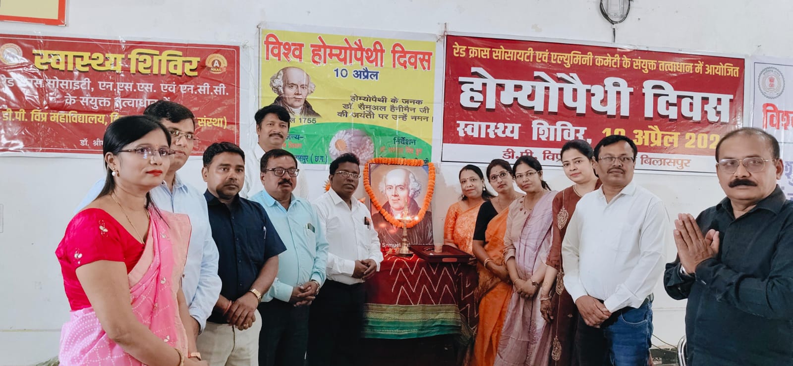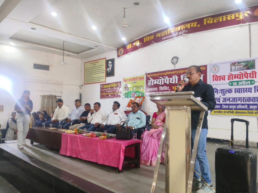 बिलासपुर- स्थानीय डी.पी. विप्र महाविद्यालय में आज 10 अप्रैल 2026 को होम्योपैथिक दिवस के उपलक्ष्य में स्वास्थ्य शिविर रेडक्रास सोसायटी, जिला आयुश अधिकारी बिलासपुर, एन.सी.सी./एन.एस.एस.के संयुक्त तत्वावधान में आयोजित किया गया। उक्त शिविर के मुख्य अतिथि डॉ. यशपाल सिंह धु्रव, कार्यक्रम के अध्यक्षता डॉ. भारती श्रीवास ने किया। इस अवसर पर डॉ. ओंकार सिंह राजपूत, डॉ. कोमल सिंह डोडे, डॉ. विश्वनाथ पटेल, डॉ. अजय भारती, डॉ. रश्मि जितपुरे, डॉ. रूखमणी कुर्रे, डॉ. अनीता सोनी, डॉ. सुरेखा कौशिक, डॉ. सना अहमदखान, डॉ. सत्येन्द्र कुमार वर्मा, डॉ. पंकज पटेल, डॉ. योगेन्द्र नाथ चौहान, श्री मोहन टंडन फार्मासिस्ट उपस्थित थे।