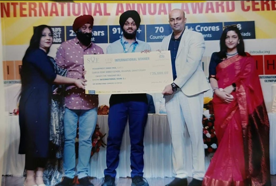 पंजाबी समाज बिलासपुर केरियर वर्ल्ड स्कूल के होनहार छात्र दिव्या माउंट लिंगिंयाडीह बिलासपुर निवासी स चरनजीत सिंह दुआ अमरजीत कौर दुआ के पौत्र एवम स गुरजीत सिंह दुआ (डिम्पल दुआ) सिल्की दुआ के सुपुत्र स मेहरप्रीत सिंह दुआ (खुश दुआ) ने साइंस ओलम्पियाड फाउंडेशन इंटरनेशनल कामर्स ओलम्पियाड द्वारा आयोजित ओलम्पियाड इंटरनेशनल कंपटीशन मे इंटरनेशनल मे तीसरी रेंक एवम जोनल रेंक एव छत्तीसगढ रेंक मे दूसरा स्थान प्राप्त कर अपने स्कूल केरियर वर्ल्ड स्कूल लाल खदान बिलासपुर पंजाबी समाज बिलासपुर छत्तीसगढ सिक्ख का नाम रौशन किया।