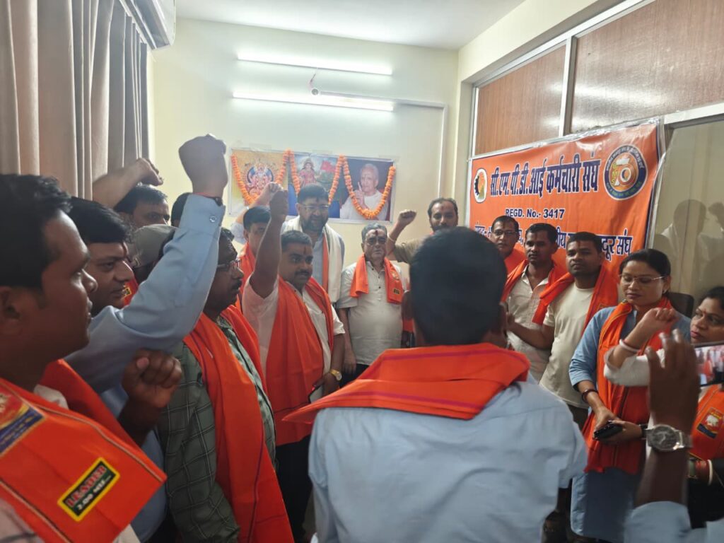 सी एम पी डी आई बिलासपुर में भारतीय मजदूर संघ से संबद्ध सी एम पी डी आई कर्मचारी संघ के शाखा कार्यालय का आज दिनांक 16 अप्रेल को भारतीय मजदूर संघ छत्तीसगढ़ के कार्यकारी अध्यक्ष श्री शंखध्वनि सिंह बनाफर ने भगवान विश्वकर्मा,भारत माता और भारतीय मजदूर संघ के संस्थापक श्रद्धेय दत्तोपंत ठेंगड़ी जी के चित्रों पर माल्यार्पण, पूजन के साथ किया। इस उद्घाटन समारोह की अध्यक्षता सी एम पी डी आई कर्मचारी संघ के केन्द्रीय कार्यकारी अध्यक्ष श्री राजकुमार सिंह ने किया तथा केन्द्रीय महामंत्री श्री देवेन्द्र तिवारी रांची से विशेष रूप से उपस्थित रहे। इस अवसर पर बिलासपुर के एरिया सचिव संजय सेन गुप्ता, कोरबा कैंप सचिव अधिर राम, अध्यक्ष प्रवीण कुमार गर्ग, बिलासपुर शाखा अध्यक्ष विष्णु राम लहरे, देवेन्द्र राम, सुदर्शन शावरा,नन्द कुमार ठाकुर,महिला प्रतिनिधि रेणुका साहू, रोहिणी देवी जांगड़े के अलावा भारतीय मजदूर जिला बिलासपुर के उपाध्यक्ष अविनाश चौबे,एस ई सी एल मुख्यालय शाखा के कार्यकारी अध्यक्ष अजय सिंह बनाफर, कोषाध्यक्ष सुनील राठौर,एन टी पी सी सीपत मजदूर संघ के महामंत्री सुनील कुमार सूर्यवंशी, कार्यकारी अध्यक्ष अंकुर धर दीवान सहित अन्य कार्यकर्ता उपस्थित रहे। इस शाखा कार्यालय के उद्घाटन के अवसर पर मुख्य अतिथि के रूप में अपने उद्बोधन में प्रदेश प्रतिनिधि के रूप में उपस्थित शंखध्वनि सिंह बनाफर ने सभी कार्यकर्ताओं को बधाई देते हुऐ इस शाखा कार्यालय को सुव्यवस्थित रूप से संचालित करने और संगठन विस्तार के साथ कार्यक्षेत्र में सभी कर्मचारियों/ ठेका श्रमिकों से सतत संपर्क और उनके प्रत्येक कठिनाईयों का समाधान करने में सक्षम बनाने के साथ ही भारतीय मजदूर संघ के जिला और प्रदेश के कार्यक्रमों में भी सक्रिय भूमिका निभाने का आह्वान किया है। कार्यक्रम के अंत में मिष्ठान वितरण किया गया तथा इस दिन को यादगार बनाने के लिए कार्यालय परिसर में वृक्षारोपण किया गया।