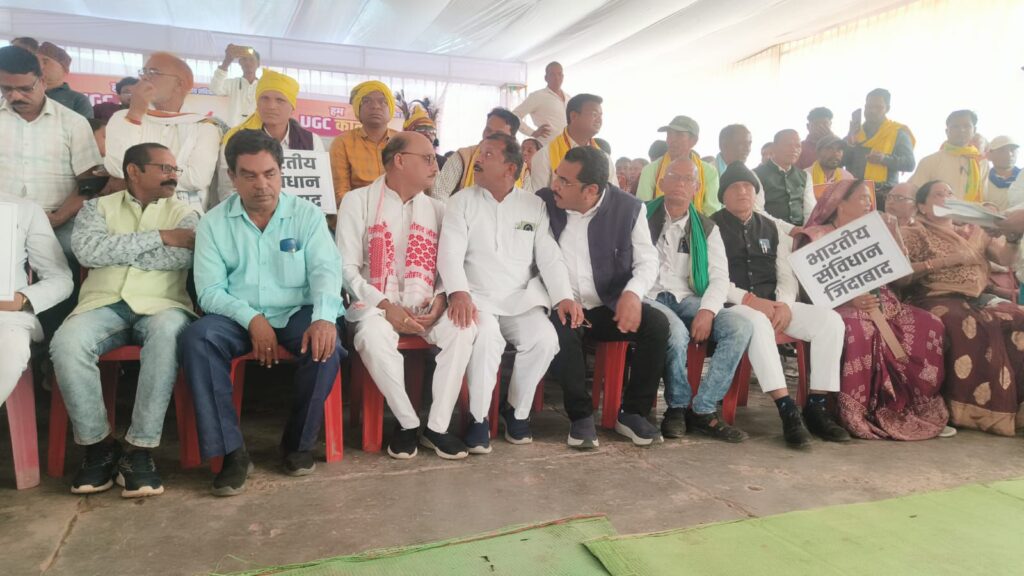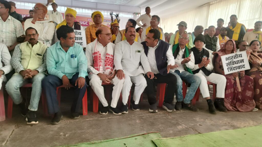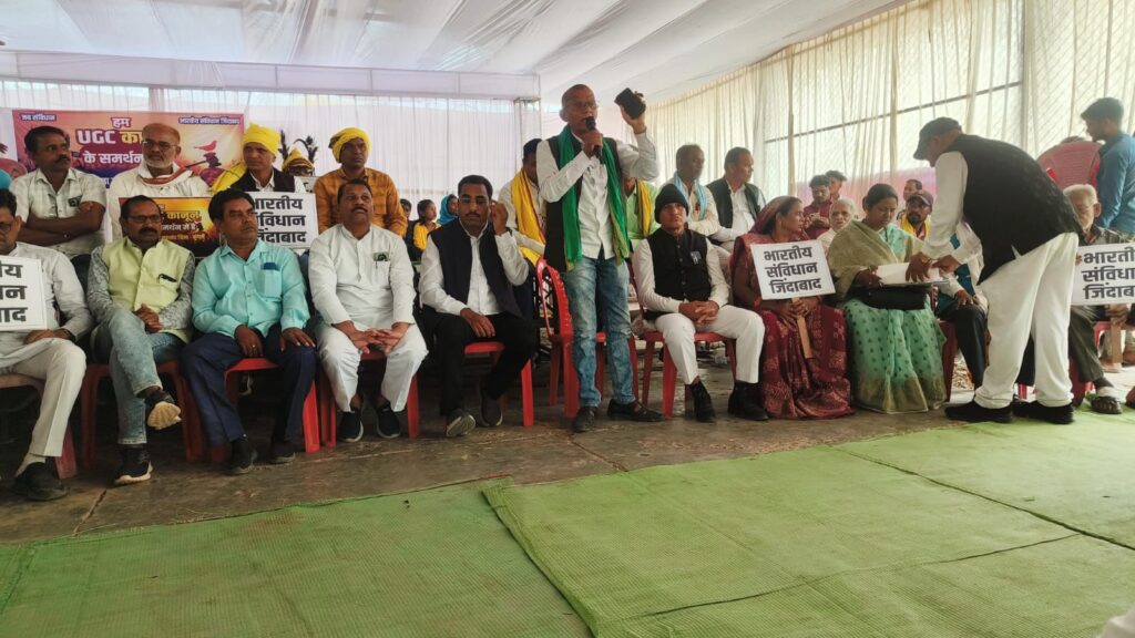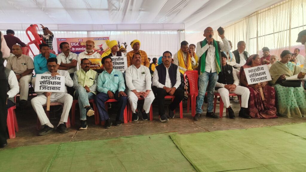 मुंगेली में SC ST OBC एकता महासंघ मुंगेली द्वारा कृषि मंडी में यूजीसी बिल के समर्थन में विशाल सभा किया गया सभा के बाद कृषि मंडी से कलेक्टर कार्यालय तक हजारों की संख्या में रैली निकाल कर कलेक्टर को यूजीसी बिल के समर्थन में राष्ट्रपति के नाम ज्ञापन सौंपा गया।