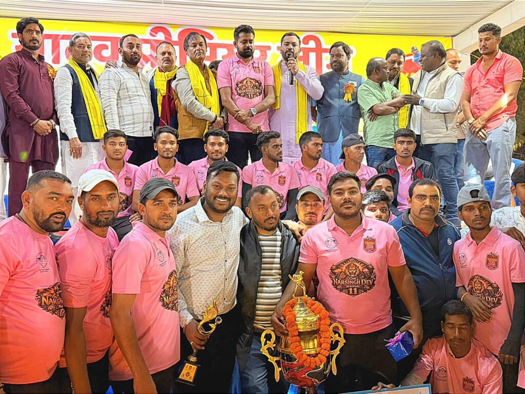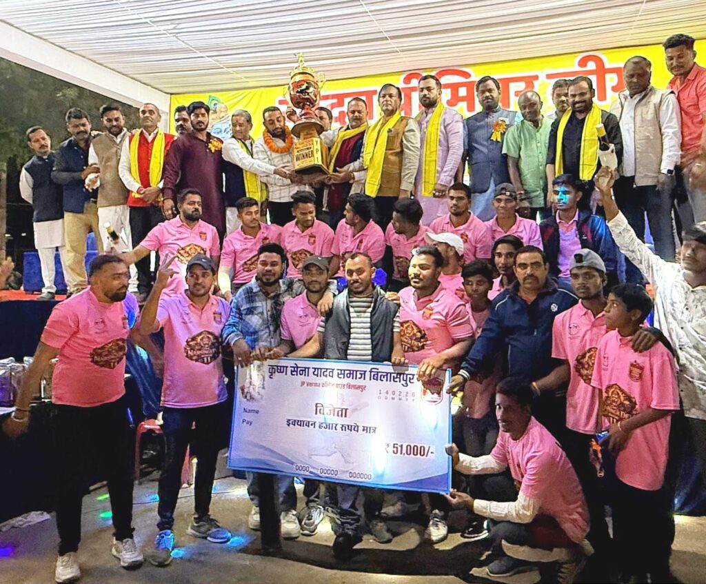 जिसमे नर्सिंग 11 ने जीत हासिल की वही उप विजेता टीम बोल बम 11 रही मैन ऑफ द सीरीज नर्सिंग 11 के अश्वनी यादव रहे, बेस्ट बेटर बोल बम के राहूल यादव रहे, बेस्ट बॉलर मनीष यादव, बेस्ट फील्डर बंटी यादव रहे, प्रथम पुरस्कार 51000 रूपये नगद एवं कप विनीत यादव द्वारा प्रदान किया गया, दूसरा इनाम 31000 हजार रुपये व कप विशाल सिंह जी द्वारा प्रदान किया गया, वहीं मैन ऑफ़ द सीरीज स्पोर्ट्स सायकल कमल सिंह एवं अनिल दुबे सैदा सरपंच के द्वारा प्रदान किया गया, इस कार्यक्रम मुख्य अतिथि धरमलाल कौशिक जी विधायक बिल्हा, अध्यक्षता श्री भूपेंद्र स्वान्नी ने जी अध्यक्ष क्रेडा, विशिष्ट अतिथि शुशांत शुक्ला विधायक बेलतरा ,पूजा विधानी महापौर बिलासपुर, विजय केसरवानी जी पूर्व जिलाध्यक्ष कांग्रेस ग्रामीण ।टीम ऑनर विष्णु यादव, संजय यादव,अमित यादव, नंदू यादव, आशीष यादव, अमर यादव, सुदीप यादव, अखिलेश यादव, रेवती यादव, डॉ राजेश यादव, राजीव यादव,राहुल यादव, सत्या यादव,टीकाराम यादव, नंदकिशोर यादव, राजकुमार यादव,आकाश यादव,शुभम यादव, सागर यादव, विकास यादव ओंकार यादव, राज यादव, राजू यादव,विजेता टीम नृसिंह के धनंजय यादव, अनिल यादव, उपविजेता टीम के खगेश यादव उपस्थित थे।ग्राउंड चारों तरफ भरा हुआ था जिसमें महिला दर्शक भी काफी संख्या में उपस्थित रही राउत बाजा आकर्षक का केंद्र रहा जो अपनी परम्परा को प्रदर्शित कर रही थी। इस कार्यक्रम का