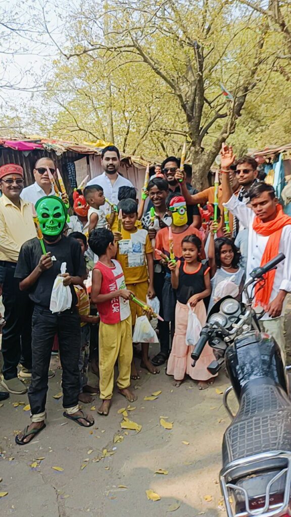 रंगों का पर्व होली हैं इस उपलक्ष्य में बुधवारी मुर्रा भट्टा के पास जरूरत मंद बच्चों को रंग, गुल्ला व पिचकारी का वितरण