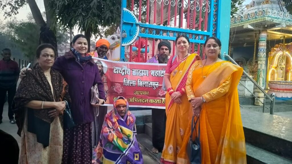 राष्ट्रीय ब्राह्मण महासंघ जिला बिलासपुर की बहनों ने गरीबों को बांटे कंबल