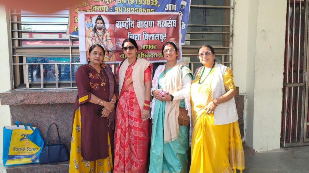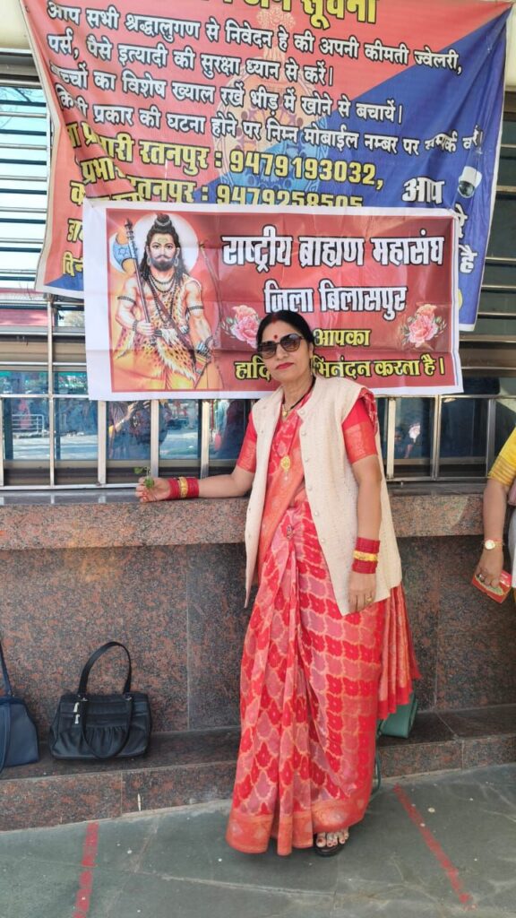 ब्राह्मण समाज की सभी बहनों ने तुलसी पूजन दिवस की पूर्व संध्या पर रतनपुर महामाया मंदिर के दर्शन के पश्चात तुलसी के पौधे का वितरण किया जिसमें राष्ट्रीय ब्राह्मण महासंघ जिला बिलासपुर से अध्यक्ष अर्चना तिवारी सचिव शशि प्रभा पांडे प्रदेश उपाध्यक्ष संगीता शर्मा एवं सीता तिवारी ने शामिल होकर इस कार्यक्रम की गरिमा को बनाया कार्यक्रम में दुर्ग भिलाई के राष्ट्रीय ब्राह्मण महासंघ की अध्यक्ष गीता पांडे प्रदेश अध्यक्ष अंजू त्रिपाठी, जिला उपाध्यक्ष नीलिमा पांडे एवं ब्राह्मण समाज से लगभग 50 बहीने शामिल हुई जिनका जिला बिलासपुर की बहनों ने स्वागत किया एवं राष्ट्रीय ब्राह्मण महासंघ जिला बिलासपुर की अध्यक्ष अर्चना तिवारी के द्वारा सभी को तुलसी के पौधे और उपहार देकर सम्मानित किया गया इसके अलावा प्रदेश उपाध्यक्ष संगीता शर्मा का भी श्रीफल और उपहार के साथ में स्वागत किया गया यह कार्यक्रम का एकमात्र उद्देश्य हमारे हिंदू परंपरा के अनुसार सभी को यह संदेश देना था कि 25 दिसंबर हम तुलसी पूजन दिवस के रूप में मनाते हुए सभी को शुभकामनाएं दें और अपने हिंदू परंपराओं का सम्मान करें राष्ट्रीय प्रभारी प्रतिभा पांडे जी एवं संभाग प्रभारी मीनू दुबे जी ने सभी बहनों को तुलसी पूजन दिवस की शुभकामनाएं दी एवं कार्यक्रम को सुचारू रूप से संपन्न कराने हेतु उचित मार्गदर्शन दिया