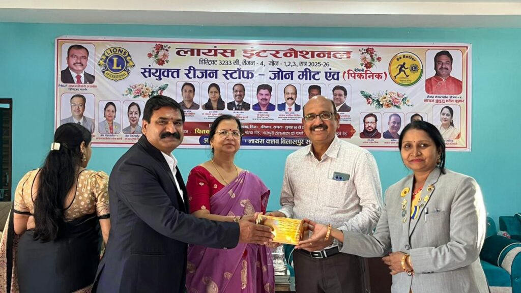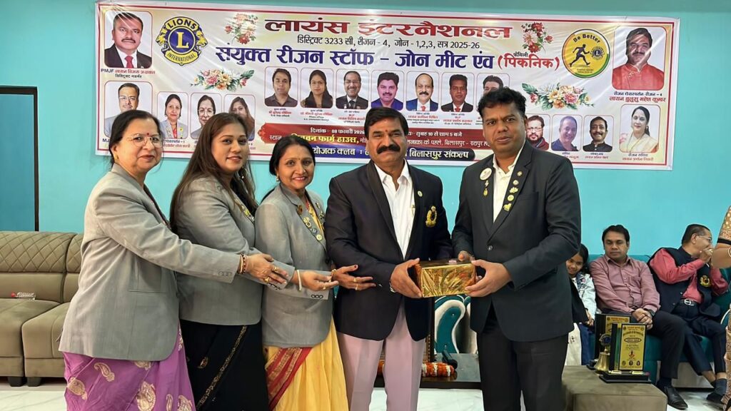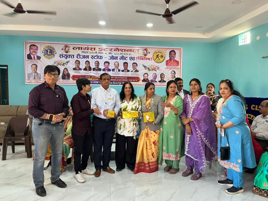 रीजन चेयरपर्सन बी महेश कुमार एवं जोन वन से जोन चेयर पर्सन श्वेताशास्त्री, जोन 2 से जोन चेयरपर्सन सुषमा तिवारी, जोन 3 से आराधना दास की रीजन फोर से संयुक्त रीजन एवं जोन मीट शहर से दूर एक खूबसूरत वातावरण मे चितवन फार्म हाउस में रखी गई जिसमें मुख्य अतिथि डा, सुरेखा कौशिक, डॉ भूपेंद्र कौशिक विकासखंड शिक्षा अधिकारी बिल्हा, श्री प्रकाश सोनथालिया पुनः हरियाली संस्थापक, सुरेश साहू प्रशिक्षक आर्ट ऑफ लिविंग को स्थान दिया गया पूर्व डिस्ट्रिक्ट गवर्नर एमजेएफ दिलीप भंडारी, रीजन एडवाइजर एमजेएफ नितिन सलूजा जी एवं जीएलटी कोऑर्डिनेटर एमजेएफ आशीष अग्रवाल विशिष्ट अतिथि रहे कार्यक्रम की अध्यक्षता रीजन चेयरपर्सन बी महेश कुमार जी ने की दीप प्रज्वलन के साथ कार्यक्रम का प्रारंभ किया समस्त कार्यक्रम का संचालन रीजन सचिव लायन अर्चना तिवारी ने किया ध्वज वंदना के साथ आरसी एवं जेडसी ने सभा प्रारंभ कीघोषणा की रीजन फोर के अंतर्गत आने वाले समस्त क्लब वसुंधरा, मिडटाउन, शक्ति ,प्राइड, ज्योत्सना, केयर , हेल्थ केयर, स्माइल , वरदान, संकल्प, मस्तूरी, श्रीजन, कैपिटल, सभी क्लब के पदाधिकारी अध्यक्ष रश्मि लता मिश्रा जी, सचिव अर्चना तिवारी, कोषाध्यक्ष विनीता मिश्रा, मिड टाउन की अध्यक्ष आरती साहू, शक्ति क्लब के अध्यक्ष अरविंदवर्मा, ज्योत्शना क्लब कीअध्यक्षएम आशा, प्राइड क्लब की अध्यक्ष प्रीति चौरसिया, वरदान क्लब की अध्यक्ष श्रद्धा खंडूजा, कैपिटल क्लब के अध्यक्ष लव श्रीवास्तव, सृजन क्लब के अध्यक्ष श्वेता शास्त्री माइक्रो चेयरपर्सन शेफाली सिंह, रोशनी दीक्षित, सुधा साव, नीना ग्रेवाल, माइक्रो चेयरपर्सन श्रद्धाराव, एमजेएफ किरण बाजपेई ,संजनामिश्रा, सावित्री जायसवाल आदि सभी क्लबसे ज्यादा से ज्यादा सदस्य उपस्थित हुए