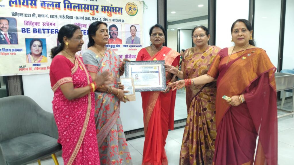 अपनी प्रशासनिक गतिविधि के अंतर्गत लायंस क्लब बिलासपुर वसुंधरा ने शहर के एक होटल में सामान्य सभा एवं बीओडी मीटिंग रखी मीटिंग की अध्यक्षता अध्यक्ष रश्मि लता मिश्रा जी ने की सर्वप्रथम मीटिंग में 8 तारीख को अमरकंटक में डिस्ट्रिक्ट कैबिनेट बैठक में प्राप्त जानकारी को क्लब के सभी मेंबरों के सामने रखा एवं कैबिनेट बैठक में प्राप्त एमजेएफ सम्मान की जानकारी देते हुए एमजेएफ शारदा कश्यप, किरण बाजपेई, पीएमजेएफ संजना मिश्रा, को बधाई एवं शुभकामनाएं दी गई सभी सदस्यों के बीच में मेंबरशिप ग्रोथ के लिए चर्चा विमर्श किया गया सचिव अर्चना तिवारी ने क्लब की सेवा गतिविधियों से सभी को अवगत कराया एवं आने वाले समय में निर्धन कन्या विवाह गतिविधि को भव्य रूप में पूरा करने के लिए योजना बनाई मीटिंग के साथ-साथ वसुंधरा परिवार ने फरवरी माह में जिन भी मेंबरों का जन्म उत्सव होता है उनके जन्मदिन का भी सेलिब्रेशन केक कटिंग करके किया गया