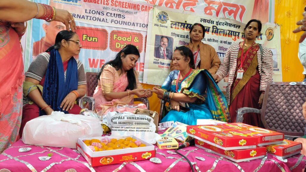 14 दिसंबर बाल दिवस के अवसर पर लायंस क्लब वसुंधरा ने मधुमेह जहां शिविर डॉक्टर अपर्णा मिश्रा के सहयोग से लगाया सरकंडा स्थित मॉडर्न हाई स्कूल में जहां पर स्कूल के स्टाफ शिक्षक शिक्षिकाओं और बच्चों के पेरेंट्स के बीचमें निशुल्क मधुमेह जांच कराई गई कार्यक्रम के अध्यक्षता अध्यक्ष रश्मि लता मिश्रा जी एवं संचालन सचिव अर्चना तिवारी ने किया यह कार्यक्रम स्कूल में इसलिए कराया गया क्योंकि बाल दिवस के उपलक्ष पर ज्यादातर सभी स्कूलों में आनंद मेला का आयोजन किया गया था जिसमें बच्चों के साथ-साथ अभिभावकों की भी संख्या काफी थी क्योंकि डिस्ट्रिक्ट से प्राप्त प्रोजेक्ट पूर्व गवर्नर सुधीर जैन सर जी के आदेश अनुसार उनके द्वारा प्रत्येक क्लब को दी गई डायबिटिक किट एवं बैनर के साथ डायबिटिक चेकअप कैंप का आयोजन करना था इसलिए वसुंधरा परिवार में इस अवसर को बाल दिवस और मधुमेह जांच शिविर दोनों को एक साथ मनाया लगभग 50 लोगों का डायबिटिक चेकअप निःशुल्क किया गया और क्यों कि बाल दिवस का सुनहरा अवसर था तो बच्चों के बीच में उनके आनंद मेला में शामिल होते हुए ढाई सौ बच्चों को मिठाई और पेन का वितरण लायंस क्लब वसुंधरा की ओर से किया गया जिसमें अध्यक्ष रश्मि लता मिश्रा जी मंजुला शिंदे, मंगला कदम संजना मिश्रा का सहयोग रहा एवं सचिव अर्चना तिवारी डिस्ट्रिक्ट चेयरपर्सन सुधा परिहार ने अपनी उपस्थिति देकर कार्यक्रम को सफल बनाया स्कूल के प्रिंसिपल किरण सिंह एवं स्कूल स्टाफ केद्वारा लायंस क्लब के सभी पदाधिकारी का श्रीफल से स्वागत किया गया