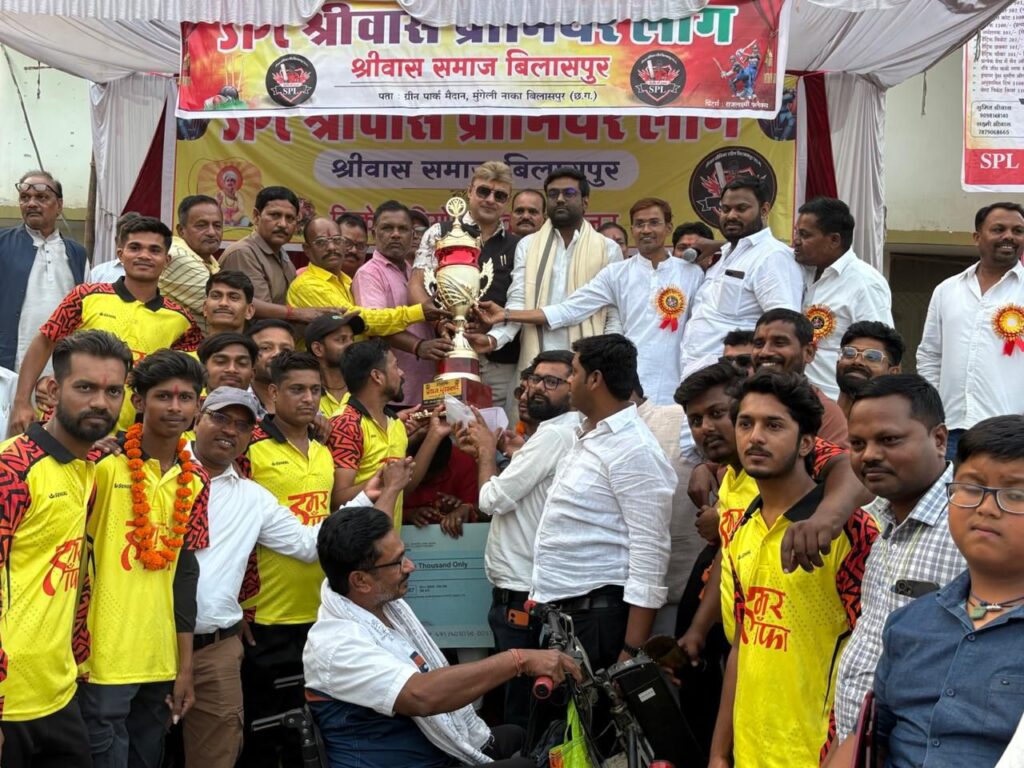 श्रीवास प्रीमियर लीग का आयोजन गौरव का विषय- त्रिलोक चंद्र श्रीवास, (श्रीवास प्रीमियर लीग टूर्नामेंट का फाइनल संपन्न) कोई भी ऐसा कार्य जिससे समाज का नाम रोशन हो, समाज के लोग गौरवान्वित हो, रोमांचित हो और एकता के सूत्र में बंधे, प्रेरित हो, वह भी सामाजिक सेवा कार्य है, श्रीवास प्रीमियर लीग का लगातार तीसरे वर्ष आयोजन करना अपने आप में गौरव का विषय है, यह बातें बिलासपुर संभाग श्रीवास समाज एवं क्रिकेट आयोजन समिति द्वारा आयोजित श्रीवास प्रीमियर लीग Spl के फाइनल मैच समापन अवसर पर पुरस्कार वितरण समारोह में मुख्य अतिथि के रूप में पहुंचे छत्तीसगढ़ प्रांत सर्वसेन समाज के प्रांतीय अध्यक्ष एवं कांग्रेस के वरिष्ठ नेता श्री त्रिलोक चंद्र श्रीवास ने व्यक्त किया, इस कार्यक्रम में विशिष्ट अतिथि के रूप में केश कला बोर्ड के उपाध्यक्ष श्री चित्रकांत श्रीवास, पुलिस इंस्पेक्टर श्री सूर्यकांत भारद्वाज, जिला अधिवक्ता संघ के कोषाध्यक्ष पी. आर. श्रीवास, श्री मनोज श्रीवास, इंजीनियर केवल श्रीवास रायपुर श्री गोरेलाल श्रीवास कोरबा जिला अध्यक्ष शत्रुघ्न श्रीवास, मुंगेली सेन समाज जिला अध्यक्ष राजीव श्रीवास, श्रिष्टि सिंह सम्पादक न्यूज हंत, विशिष्ट अतिथि के रूप में उपस्थित थे, कार्यक्रम का अध्यक्षता संभागीय अध्यक्ष श्री सुरेंद्र श्रीवास ने एवं संचालन कोषाध्यक्ष संतोष श्रीवास आभार संभागीय सचिव चंद्रमणि श्रीवास ने व्यक्त किया, फाइनल मैच कोरबा की टीम एवं हाफi बिलासपुर की टीम के मध्य खेला गया, जिसमें हाफi की टीम विजयी रहे, विजेता टीम को स्वर्गीय श्री श्रीभंजन प्रसाद श्रीवास की स्मृति में ₹25000 नगद ट्रॉफी से पुरस्कृत किया गया, उपविजेता टीम को ₹15000 नगद एवं ट्रॉफी और तृतीय स्थान पर चकरभाठा की भाई-भाई इलेवन क्रिकेट टीम को रुपए 11000 और ट्रॉफी से सम्मानित किया गया, साथ ही साथ चतुर्थ स्थान पर आने वाले रायपुर टीम सहित मैन ऑफ द सीरीज मैन ऑफ द मैच बेस्ट बॉलर, बेस्ट फील्डर, बेस्ट बैट्समैन, बेस्ट कैचर, बेस्ट कमेंटेटर, बेस्ट अंपायर सहित सैकड़ो अन्य इनाम अतिथियों के द्वारा वितरित किए गए, इस अवसर पर आयोजन समिति के प्रमुख श्री विकास श्रीवास नवीन श्रीवास विनय श्रीवास मनी श्रीवास निखिल श्रीवास संतोष श्रीवास कोषाध्यक्ष शुभम श्रीवास सुमित श्रीवास् सह – सचिव, विक्की श्रीवास सोनू श्रीवास आदि के द्वारा आए हुए समस्त अतिथियों का स्मृति चिन्ह देकर सम्मान किया गया, इस कार्यक्रम में प्रमुख रूप से श्री घासीराम श्रीवास हेमंत श्रीवास संतोष श्रीवास बबलू श्रीवास राजकुमार श्रीवास प्रकाश श्रीवास जगदीश श्रीवास राजन श्रीवास आशीष श्रीवास बिल्डर नरेंद्र श्रीवास आभार श्रीवास प्रमोद श्रीवास रिकी राम, आनंद श्रीवास रमेश श्रीवास सुरेश 