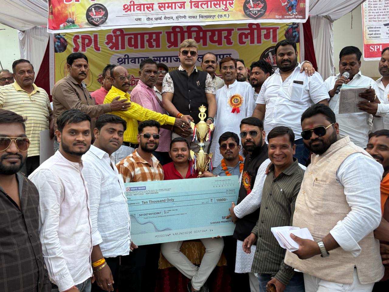 श्रीवास प्रीमियर लीग का आयोजन गौरव का विषय- त्रिलोक चंद्र श्रीवास, (श्रीवास प्रीमियर लीग टूर्नामेंट का फाइनल संपन्न) कोई भी ऐसा कार्य जिससे समाज का नाम रोशन हो, समाज के लोग गौरवान्वित हो, रोमांचित हो और एकता के सूत्र में बंधे, प्रेरित हो, वह भी सामाजिक सेवा कार्य है, श्रीवास प्रीमियर लीग का लगातार तीसरे वर्ष आयोजन करना अपने आप में गौरव का विषय है, यह बातें बिलासपुर संभाग श्रीवास समाज एवं क्रिकेट आयोजन समिति द्वारा आयोजित श्रीवास प्रीमियर लीग Spl के फाइनल मैच समापन अवसर पर पुरस्कार वितरण समारोह में मुख्य अतिथि के रूप में पहुंचे छत्तीसगढ़ प्रांत सर्वसेन समाज के प्रांतीय अध्यक्ष एवं कांग्रेस के वरिष्ठ नेता श्री त्रिलोक चंद्र श्रीवास ने व्यक्त किया, इस कार्यक्रम में विशिष्ट अतिथि के रूप में केश कला बोर्ड के उपाध्यक्ष श्री चित्रकांत श्रीवास, पुलिस इंस्पेक्टर श्री सूर्यकांत भारद्वाज, जिला अधिवक्ता संघ के कोषाध्यक्ष पी. आर. श्रीवास, श्री मनोज श्रीवास, इंजीनियर केवल श्रीवास रायपुर श्री गोरेलाल श्रीवास कोरबा जिला अध्यक्ष शत्रुघ्न श्रीवास, मुंगेली सेन समाज जिला अध्यक्ष राजीव श्रीवास, श्रिष्टि सिंह सम्पादक न्यूज हंत, विशिष्ट अतिथि के रूप में उपस्थित थे, कार्यक्रम का अध्यक्षता संभागीय अध्यक्ष श्री सुरेंद्र श्रीवास ने एवं संचालन कोषाध्यक्ष संतोष श्रीवास आभार संभागीय सचिव चंद्रमणि श्रीवास ने व्यक्त किया, फाइनल मैच कोरबा की टीम एवं हाफi बिलासपुर की टीम के मध्य खेला गया, जिसमें हाफi की टीम विजयी रहे, विजेता टीम को स्वर्गीय श्री श्रीभंजन प्रसाद श्रीवास की स्मृति में ₹25000 नगद ट्रॉफी से पुरस्कृत किया गया, उपविजेता टीम को ₹15000 नगद एवं ट्रॉफी और तृतीय स्थान पर चकरभाठा की भाई-भाई इलेवन क्रिकेट टीम को रुपए 11000 और ट्रॉफी से सम्मानित किया गया, साथ ही साथ चतुर्थ स्थान पर आने वाले रायपुर टीम सहित मैन ऑफ द सीरीज मैन ऑफ द मैच बेस्ट बॉलर, बेस्ट फील्डर, बेस्ट बैट्समैन, बेस्ट कैचर, बेस्ट कमेंटेटर, बेस्ट अंपायर सहित सैकड़ो अन्य इनाम अतिथियों के द्वारा वितरित किए गए, इस अवसर पर आयोजन समिति के प्रमुख श्री विकास श्रीवास नवीन श्रीवास विनय श्रीवास मनी श्रीवास निखिल श्रीवास संतोष श्रीवास कोषाध्यक्ष शुभम श्रीवास सुमित श्रीवास् सह – सचिव, विक्की श्रीवास सोनू श्रीवास आदि के द्वारा आए हुए समस्त अतिथियों का स्मृति चिन्ह देकर सम्मान किया गया, इस कार्यक्रम में प्रमुख रूप से श्री घासीराम श्रीवास हेमंत श्रीवास संतोष श्रीवास बबलू श्रीवास राजकुमार श्रीवास प्रकाश श्रीवास जगदीश श्रीवास राजन श्रीवास आशीष श्रीवास बिल्डर नरेंद्र श्रीवास आभार श्रीवास प्रमोद श्रीवास रिकी राम, आनंद श्रीवास रमेश श्रीवास सुरेश 