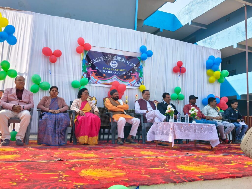 सेंट पॉल अंग्रेजी माध्यम हायर सेकेंडरी स्कूल तिफरा में प्रतिवर्ष की तरह इस वर्ष भी वार्षिक खेल उत्सव दिवस एवं पुरस्कार वितरण समारोह का आयोजन किया गया । जिसमें इस वर्ष हुई खेलकूद में सम्मिलित विजेता खिलाड़ियों को पुरस्कार वितरण कर सम्मानित किया गया ।इस समारोह में विशिष्ट अतिथि के रूप में श्री रविंद्र सिंह पूर्व योगआयोग सदस्य छत्तीसगढ़ शासन शिक्षा विद रविंद्र पांडे जी पूर्व पार्षद भागवत श्रीवास जी संजय दवे शामिल हुए । रविंद्र सिंह जी ने बच्चों एवं पालकों को संबोधित करते हुए शिक्षा के साथ-साथ खेलकूद का भी जीवन में अमूल्य महत्व बताया एवं खेल से शारीरिक मजबूती के साथ-साथ बौद्धिक क्षमता का भी विकास बताया ।इस कार्यक्रम में खिलाड़ियों को खो खो कबड्डी क्रिकेट बैडमिंटन एवं कराते खेल में बच्चों को पुरस्कार दिया गया। पिछले दो वर्षों से लगातार विद्यालय द्वारा कराते खेल को प्रोत्साहित किया जा रहा है जिसे सीनियर कराते प्रशिक्षक ठाकुर कर्ण सिंह एवं शिवानी बुधौलिया द्वारा लगातार बच्चों को कराते खेल का प्रशिक्षण दे रहे हैं। इस कार्यक्रम में विद्यालय के अध्यक्ष सेलिना जॉर्ज मैडम मैनेजर राकेश दुबे सर विजय पटेल व्यायाम शिक्षक राकेश वर्मा एवं प्राचार्य आशा दुबे जी एवं विद्यालय के सभी शिक्षक व छात्र छात्राएं उपस्थित रहे।