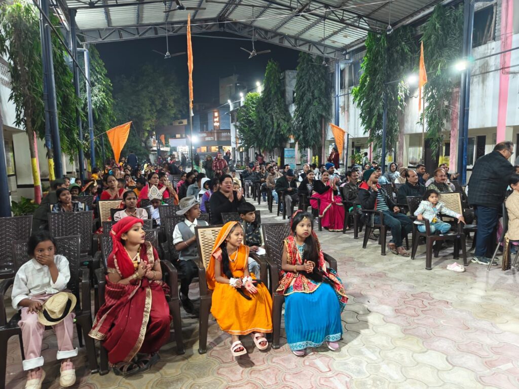 मुख्य वक्ता पूर्णेन्दु भट्ट अपने उद्बोधन में हिंदू समाज के ऊपर प्रकाश डाला/ईश्वर रजक एवं युगल शर्मा जी के द्वारा शानदार भजनों की प्रस्तुति दी गई तत्पश्चात छोटे-छोटे बच्चों के द्वारा रंगारंग फैंसी ड्रेस का आयोजन किया गया इस कार्यक्रम में 35 बच्चों ने भाग लिया इसमें प्रथम पुरस्कार राध्या देवांगन, द्वितीय पुरस्कार दिशा कुशवाहा तथा तृतीय पुरस्कार हर्षिता रजक एवं दो सातवां पुरस्कार नंदिता साव, एवं प्रवीण रजक को दिया गया बाकी बचे 30 बच्चों को भी पुरस्कार से सम्मानित किया गया इसके निर्णय के रूप में श्रीमती ज्योति मिश्रा, श्रीमती सरबजीत कौर, तथा विकास बाजपेई जी रहे