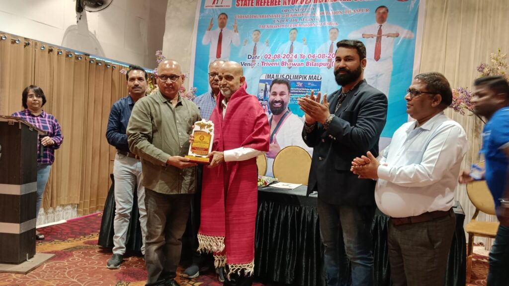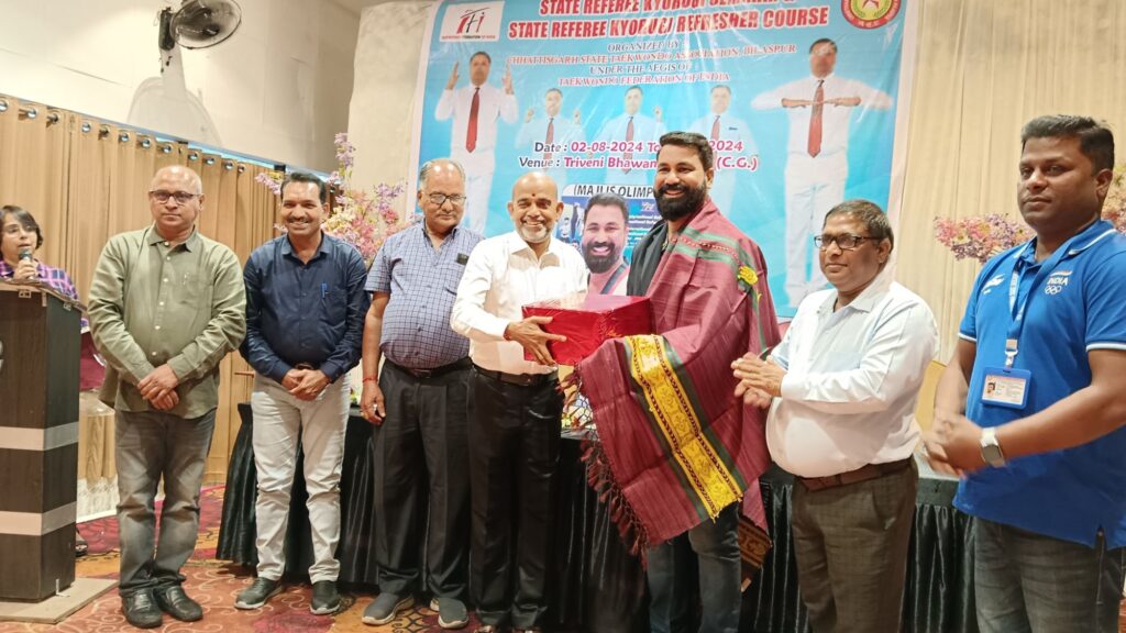 जिसमे 2 अगस्त से 4 अगस्त तक आयोजित रेफरी एवं रिफ्रेशर प्रोग्राम में आंध्रप्रदेश के इंटरनेशनल रेफरी ने 3 दिनों तक विभिन्न जिलों से आये ताइक्वांडो खिलाड़ियों को प्रशिक्षण दिया। प्रशिक्षण देने पहुंचे इंटरनेशनल रैफरी ने कहा कि छत्तीसगढ़ ताइक्वांडो संघ के सेक्रेट्री मनजीत पूरी गोस्वामी का मैं दिल से धन्यवाद करता हूँ।जिन्होंने ताइक्वांडो को ना सिर्फ छत्तीसगढ़ में बढ़ावा दिया बल्कि प्रदेश के युवाओं के तन मन दिल में ताइक्वांडो को लेकर एक जज्बा जगाया।जिसके चलते आज छत्तीसगढ़ के युवा भी डिस्ट्रिक्ट,,स्टेट से लेकर नेशनल ताइक्वांडो ओलंपिक गेम्स में हिस्सा ले रहे है और छत्तीसगढ़ का नाम रोशन कर रहे है।इसी तरह उन्होंने भी विभिन्न जिलों से आये ताइक्वांडो के खिलाड़ियों को रैफरी सेमिनार एवं रिफ्रेशर कोर्स के जरिये प्रशिक्षण दिया।प्रशिक्षण के बाद अतिथि के रूप में एवं खिलाड़ियों को प्रशिक्षण देने शामिल हुए इंटरनेशनल रैफरी को शॉल श्रीफल और मोमेंटो देकर सम्मानित किया गया।इसके साथ ही प्रशिक्षण प्राप्त कर चुके खिलाड़ियों को भी मोमेंटो और प्रशस्ति पत्र देकर सम्मानित किया गया।निश्चित ही यहां जितने भी खिलाड़ियों ने प्रशिक्षण प्राप्त किया है उन सभी का सेलेक्शन रामपुरी गोस्वामी ने बताया की आगामी दिनो में आयोजित राज्य लेवल से लेकर नेशनल लेवल के ताइक्वांडो ओलंपिक गेम्स में होगा।इस दौरान छत्तीसगढ़ ताइक्वांडो संघ के समस्त पदाधिकारी एवं सदस्य और बड़ी संख्या में ताइक्वांडो के खिलाड़ी शामिल हुए।