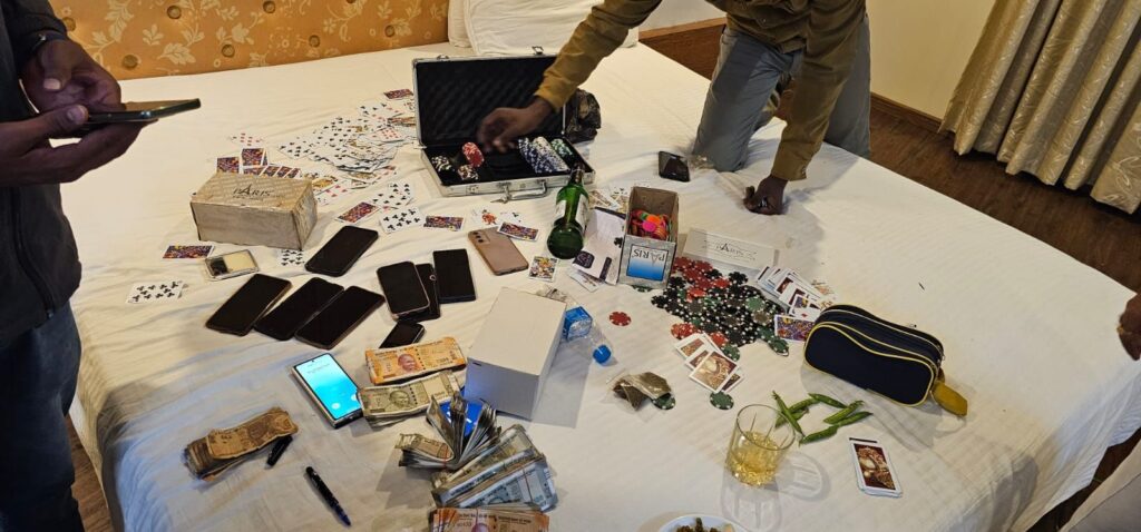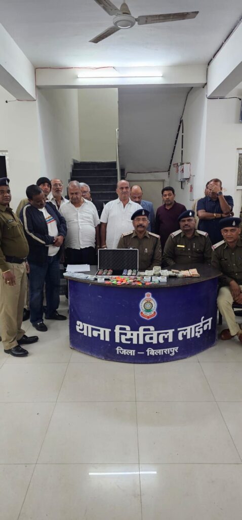 जिले मे जुआ, सटटा के अपराध पर पूर्ण अंकुश लगाने के संबंध मे विशेष अभियान चलाने हेतु आवश्यक दिशा निर्देश दिया गया था मुखबीर सूचना मिली की होटल ईस्ट पार्क के रूम नम्बर 405 में जुआ खेल रहे है थाना सिविल लाईन पुलिस द्वारा रात्रि करीब 21.30 बजे होटल ईस्ट पार्क में जाकर रेड कार्यवाही किया गया जो 10 जुआडियान सहित होटल मैनेजर याशीर ईकबाल को पकड़े जो तास के पत्तो से रूपये का हार जीत का दांव लगाकर कट पत्ती नामक जुआ खेल रहे थे तथा प्लास्टिक क्वाईन (टोकन)का उपयोग कर रहे थे। फड एवं कब्जे से कुल जुमला रकम 3,50,300 रूपये व 52 पत्ती ताश की गड्डी एवं प्लास्टिक क्वाईन 350 नग को जप्त किया गया, जुवाडियानों का कृत्य 3(2) 4 छत्तीसगढ जुआ प्रतिषेध अधिनियम का पाये जाने से जुआडियों एवं होटल ईस्ट पार्क के मैनेजर के विरूध्द कार्यवाही की गई है।
