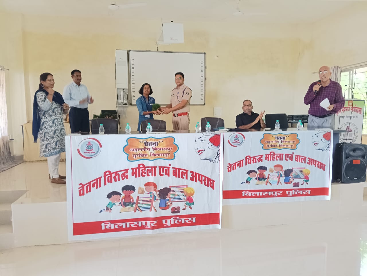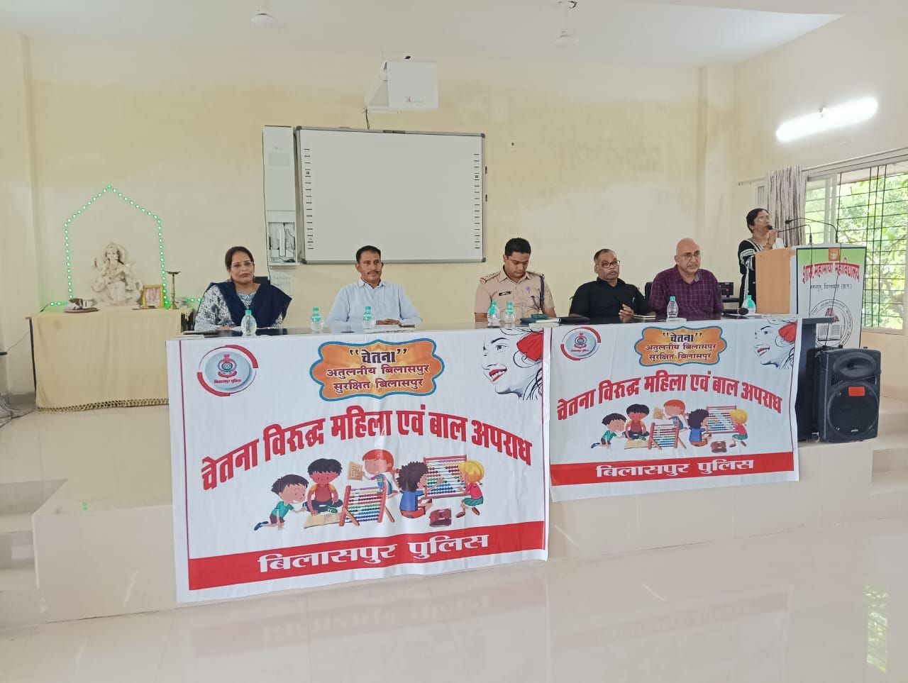 बिलासपुर। शासकीय महामाया महाविद्यालय रतनपुर में आज राष्ट्रीय सेवा योजना, रतनपुर पुलिस एवं महिला चेतना मित्र के संयुक्त तत्वाधान मे *महिला एवं बाल अपराध विरुद्ध चेतना* कार्यक्रम का आयोजन किया गया। महाविद्यालय के प्राचार्य डॉक्टर अशोक कुमार लहरे ने अध्यक्षीय उद्बोधन में उन्होंने समय के साथ बढ़ते साइबर अपराध के बारे में विद्यार्थियों को अवगत कराया ,उन्होंने कहा कि सभी अपराध सहित साइबर अपराध के रोकथाम के लिए शिक्षा का महत्वपूर्ण स्थान है। इस कार्यक्रम में रतनपुर टी आई श्री रजनीश सिंह ने टेक्नोलॉजी के गलत उपयोग के माध्यम से साइबर क्राइम बढ़ते जा रहा है तथा उन्होंने विभिन्न प्रकार के साइबर अपराध से बचने के लिए विद्यार्थियों को जागरूक किया,