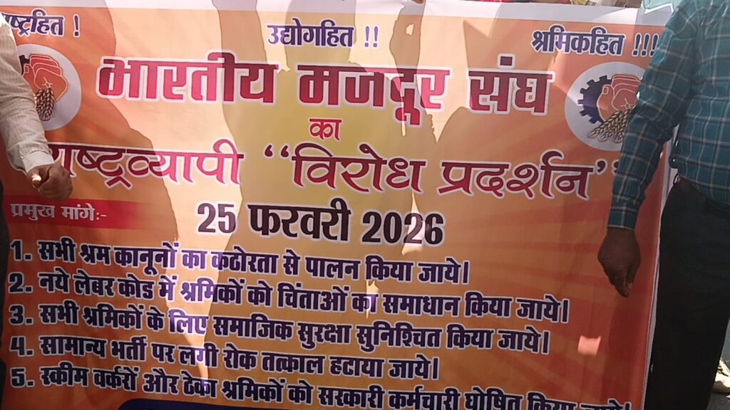 बिलासपुर। श्रम कानून संहिता के विरोध में भारतीय मजदूर संघ के आह्वान पर बुधवार को राष्ट्रव्यापी प्रदर्शन किया गया। इसी क्रम में बिलासपुर में भी संघ के कार्यकर्ताओं ने रैली निकालकर जोरदार विरोध दर्ज कराया और कलेक्टर के माध्यम से मुख्यमंत्री के नाम ज्ञापन सौंपा। रैली में बड़ी संख्या में मजदूर, कर्मचारी और संघ पदाधिकारी शामिल हुए।