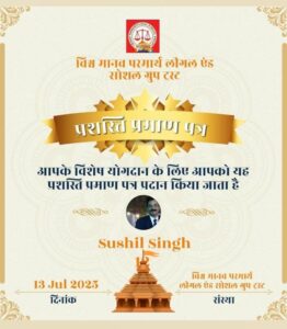 तत्वधान में विश्व हिंदू सेवा दल के के सहयोग से आज विश्व मानव परमार्थ ट्रस्ट, राम राज्य जन कल्याण मंच, सम्पूर्ण भारतीय चैरिटेबल ट्रस्ट, विश्व हिंदू महासभा सामाजिक संस्थाओ द्वारा आज की योग गोष्ठी के माध्यम से संस्थाओं के पदाधिकारी के साथ चर्चा परिचर्चा हुई जिसमें संपूर्ण भारत में संस्था के राज्य प्रभारी पदाधिकारी का चयन व। सभी प्रदेश कार्यालय मे संस्था के संविधान के द्वारा संवैधानिक रूप से गौ माता। हेतू गौ शाला, गुरूकुल ,जनसेवा केंद्र , रोजगार, शास्त्रीय संगीत के ज्ञान हेतु संगीतकला केंद्र खोले जाएंगे ,जिसमें समाज के सभी दबे कुचले व परेशान व्यक्तियों की समस्या को तत्काल प्रभाव से देखते हुए उस पर कार्य व कार्यवाही करवाई जाएगी ।साथ ही संयुक्त संस्थाओं के अंतरराष्ट्रीय संरक्षक श्री 1008 हिमानंद सरस्वती ,राष्ट्रीय संग्रक्षक/अध्यक्ष कैलाश राजपूत, भोजपुरी समाज बिलासपुर के अध्यक्ष विजय ओझा वरिष्ठ उपाध्यक्ष सुभाष चंद्र तिवारी आवाहन किया कि सभी लोग इस शुभ कार्य में पहुंचे, मौके पर भाव प्रबल संदेश के माध्यम से सभी को बधाई देते हुए आम जनमानस को धर्म व सामाजिक प्रतिष्ठा को बढ़ाने हेतु आवाहन किया राष्ट्रीय अध्यक्ष संस्कृति प्रकोष्ठ विश्व हिंदू सेवादल/मानव परमार्थ ट्रस्ट ऑपरेशन हेड बॉस ग्रुप पंडित श्रवण दुबे समुद्रशास्त्री मां काली व भैरव का वैदिक मित्रों के साथ पूजा अर्चना किया ।नवनियुक्त पदाधिकारी सुशील सिंह ने भी अपने विचार रखे वह 11 सूत्री कार्यक्रम से जुड़ते हुए गौशाला, गुरुकुल, रोजगार सेंटर सिलाई कढ़ाई केंद्र की योजनाओं के साथ आमजन मानस को मुख्य धारा प्रवास से जोड़ते हुए मजबूत बनाने का आवाहन कियाजिसके अंतर्गत 11 सूत्री कार्यक्रम में शिक्षा स्वास्थ्य रोजगार स्वरोजगार स्किल डेवलपमेंट प्रशिक्षण गुरुकुल गौशाला वृद्ध आश्रम सामूहिक विवाह कुरीतियों पर असामाजिक तत्व पर नकेल आम जनमानस को मजबूत सहयोग हो सके।