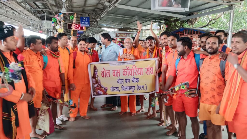 बोल बम कावरिया संघ तोरवा बिलासपुर से शिवजी को प्रिय सावन महीने में झारखंड के देवघर स्थित बैजनाथ धाम में 100 से भी अधिक किलोमीटर पदयात्रा करते हुए जलाभिषेक करना पुण्यकारी माना जाता है. इसके लिए देश भर से कांवरिये देवघर पहुंच रहे हैं ।यहां सोमवार को जलाभिषेक विशेष फलदाई रहती है। इस सोमवार को देवघर स्थित बाबा बैजनाथ धाम के जलाभिषेक के लिए तोरवा बोल बम समिति के 100 से अधिक सदस्य रविवार को साउथ बिहार एक्सप्रेस से रवाना हुए। भगवा वस्त्रों में कांवर लेकर स्टेशन पहुंचे कांवड़ियों के बोल बम के नारे से पूरा स्टेशन गूंजने लगा। इन सभी ने कहा कि वे कई वर्षों से इस परंपरा का निर्वहन कर रहे हैं और उनका सौभाग्य है कि इस बार ट्रेनों की कम उपलब्धता के बावजूद में बाबा धाम जा पा रहे हैं। उन्होंने कहा कि बाबा धाम में प्रदेश और देश की खुशहाली की कामना की जाएगी।
