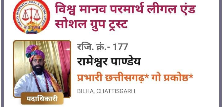अंतर्गत हाई कोर्ट बिलासपुर छत्तीसगढ़ में विश्व मानव परमार्थ ट्रस्ट के नवनियुक्त सदस्ययो की उपस्थिति में भारतीय हिंदू राष्ट्र निर्माण सेना ने समुद्र शास्त्री का पदोन्नति पर जगह-जगह स्वागत।