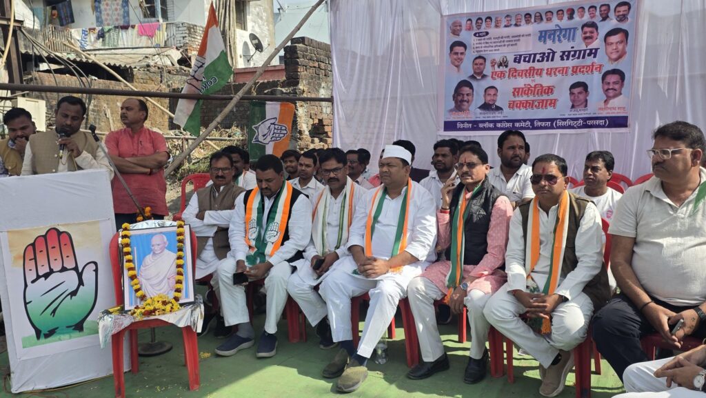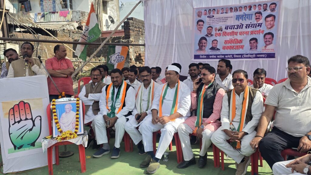 छत्तीसगढ़ प्रदेश कांग्रेस कमेटी के आह्वान पर मनरेगा बचाओ संग्राम के तहत ब्लॉक कांग्रेस कमेटी तिफरा के अध्यक्ष लक्ष्मीनाथ साहू के नेतृत्व में एकदिवसीय धरना प्रदर्शन किया गया साथ ही प्रदेश में धान खरीदी की समय सीमा बढ़ाये जाने की माँग को लेकर रायपुर – बिलासपुर मुख्य मार्ग पर सांकेतिक चक्काजाम कर तहसीलदार को राष्ट्रपति एवं राज्यपाल के नाम ज्ञापन सौंप कर मनरेगा में किए गए बदलाव को तत्काल वापस लेने, न्यूनतम दैनिक वेतन 400 रुपये करने तथा प्रदेश में किसानों की सुविधा व संपूर्ण धान की खरीदी को लेकर समय सीमा बढ़ाए जाने की मांग की !