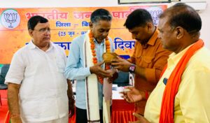 भाजपा कार्यालय में मीसा बंदियों और उनके परिवार के लोगो का शाल श्रीफल भेंटकर सम्मानित किया गया