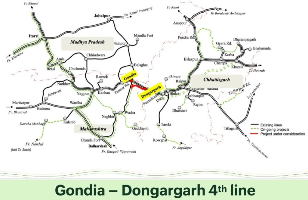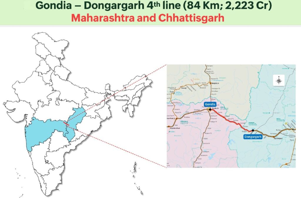 इन चार परियोजनाओं में दक्षिण पूर्व मध्य रेलवे के गोंदिया–डोंगरगढ़ खंड (84 किलोमीटर, ₹2,223 करोड़) की चौथी रेल लाइन परियोजना भी शामिल है, जो महाराष्ट्र और छत्तीसगढ़ राज्यों से होकर गुजरती है । यह खंड पूर्व, मध्य और पश्चिम भारत को जोड़ने वाले महत्वपूर्ण यात्री एवं माल यातायात मार्ग पर स्थित है ।