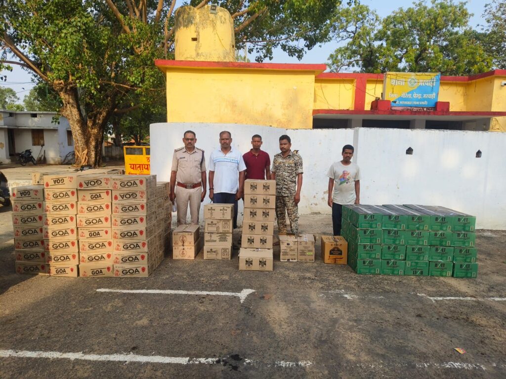 भारी मात्रा में मध्यप्रदेश राज्य की बीयर और ब्रांडेड शराब जप्त कुल 181 पेटियों में लगभग 1420 लीटर की शराब की बॉटल की जप्त