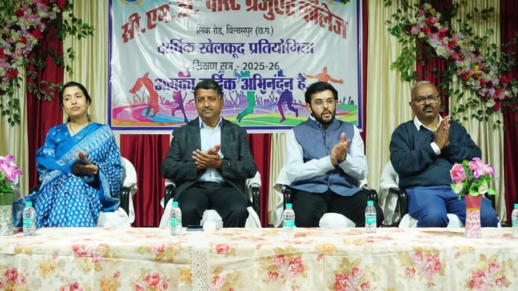 बिलासपुर। अंचल के प्रतिष्ठित महाविद्यालय सीएमडी पोस्ट ग्रेजुएट कॉलेज, बिलासपुर (छ.ग.) में शैक्षणिक सत्र 2025–26 के अंतर्गत वार्षिक खेलकूद प्रतियोगिता का भव्य एवं उत्साहपूर्ण शुभारंभ किया गया। कार्यक्रम का आयोजन महाविद्यालय परिसर में गरिमामय वातावरण में संपन्न हुआ।