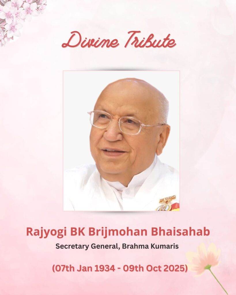 92 वर्षीय ब्रह्माकुमारी संस्था के महासचिव राजयोगी बीके बृजमोहन को दी गई भावपूर्ण श्रद्धांजलि…
