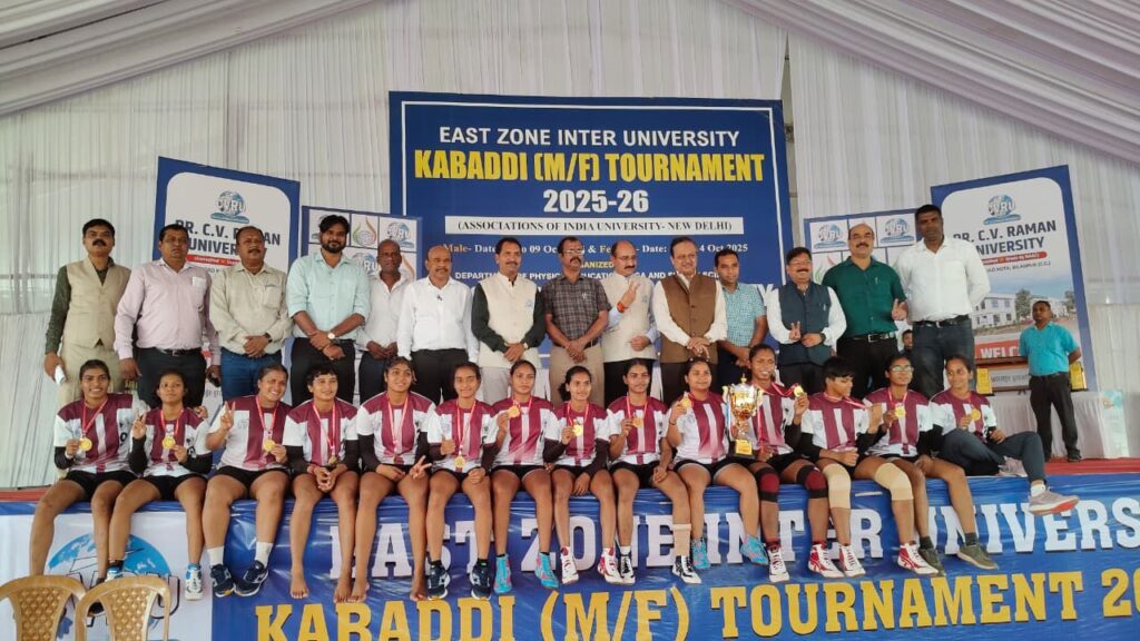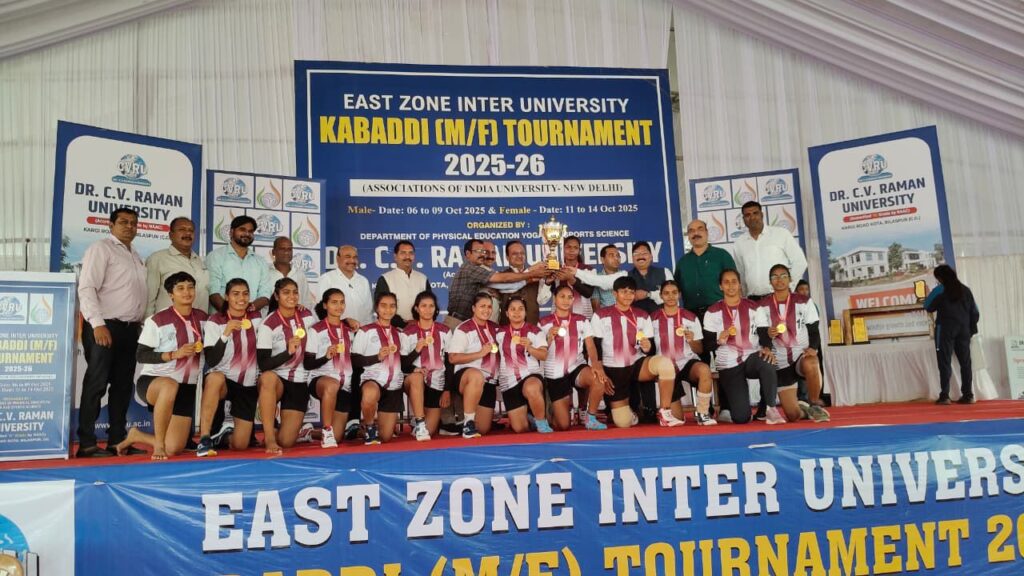 पूर्वी क्षेत्र अंतर विश्वविद्यालय कबड्डी महिला प्रतियोगिता का आयोजन डॉक्टर सी वी रमन विश्वविद्यालय कोटा बिलासपुर में दिनांक 11 अक्टूबर से 14 अक्टूबर के मध्य संपन्न हुई