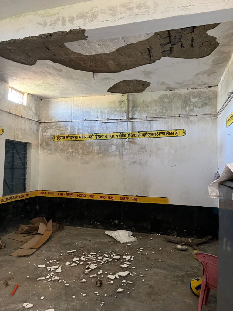 टूटी दीवारें, टपकती छतें, और बच्चों के बैठने तक की सुविधा नहीं — यह नज़ारा हमारे सिस्टम की सच्चाई बयां करता है।