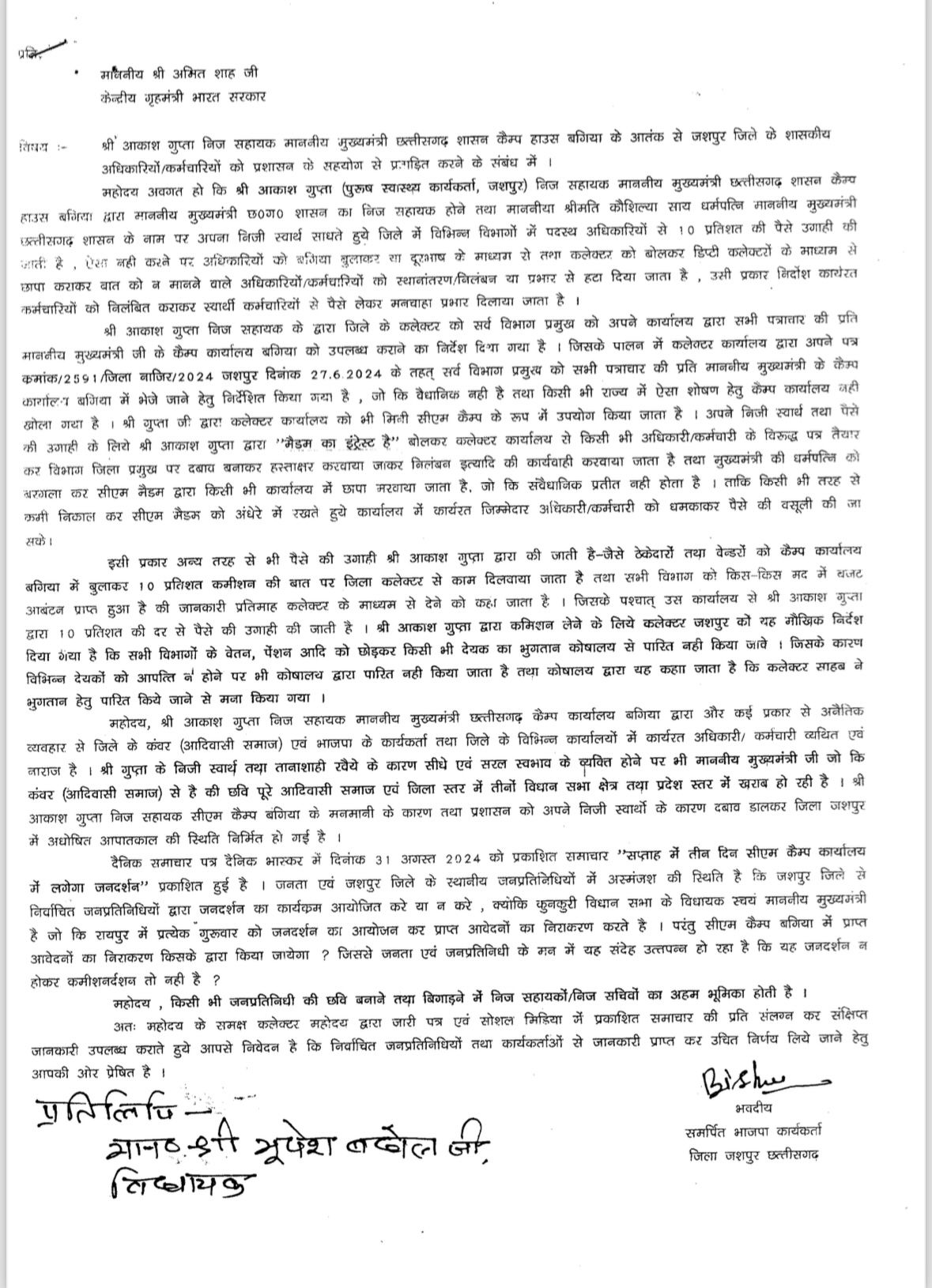 1. मुख्यमंत्री @vishnudsai के निज सहायक द्वारा मुख्यमंत्री के क्षेत्र में कैंप कार्यालय खोलकर अधिकारियों से वसूली करके अवैध ‘वसूली उद्योग’ चलाया जा रहा है