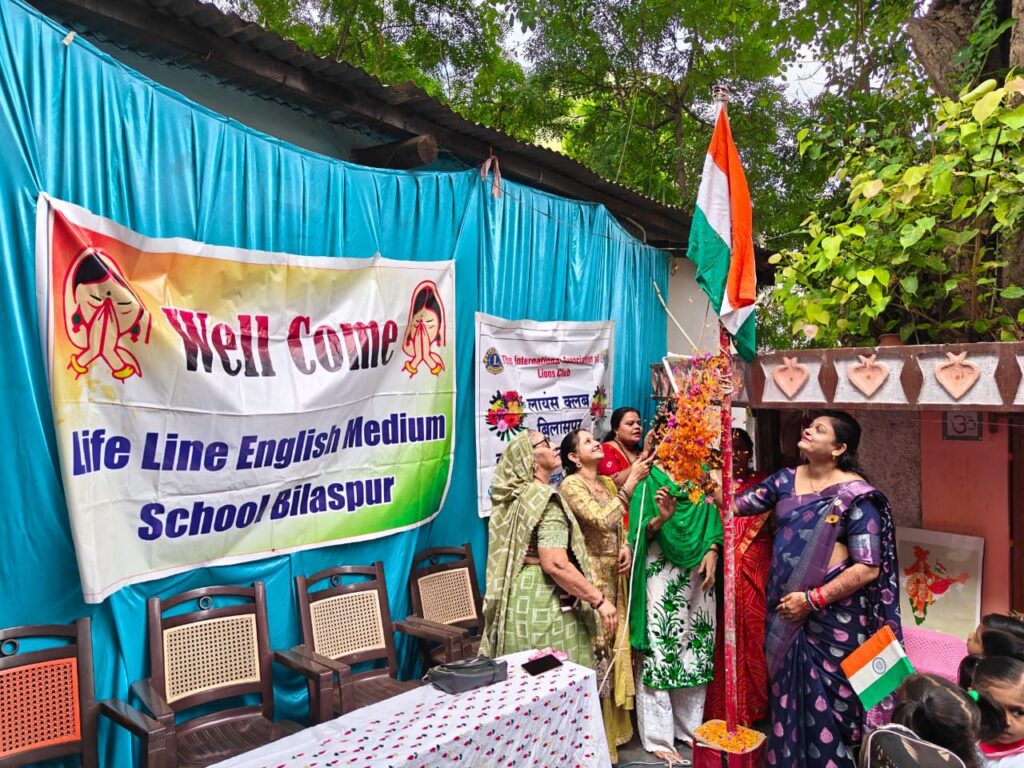 लाइफलाइन इंग्लिश मीडियम स्कूल मसनगंज बिलासपुर में समाज सेवा के क्षेत्र मे अग्रणी संस्था लायंस क्लब बिलासपुर क्लासिक प्लस की अध्यक्ष लायन प्रीति गुप्ता ने ध्वजारोहण किया इस कार्यक्रम में विशिष्ट अतिथि के रूप में लायन सचिव माधवी स्वर्णकार साला की प्राचार्य श्रीमती उषा मिश्रा संरक्षक श्रीमती मनोरमा मिश्रा उपस्थित थी अतिथियों के द्वारा दीप प्रज्वल कर कार्यक्रम की शुरुआत की गई तत्पश्चात सभी अतिथियों का स्कूल की शिक्षकों के द्वारा पुष्प गुच्छ से स्वागत किया गया तथा बच्चों के द्वारा सांस्कृतिक कार्यक्रम किया गया स्वागत भाषण पूर्व पार्षद राजेश मिश्रा जी के द्वारा किया गया मुख्य अतिथि लायन प्रीति गुप्ता ने अपने उद्बोधन में स्वतंत्रता दिवस की 79 वर्षगांठ के अवसर पर अपने विचार रखें तथा सभी को स्वतंत्रता दिवस की शुभकामनाएं दी /