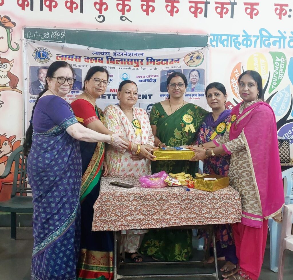 लायंस क्लब बिलासपुर मिडटाउन ने स्कूल में शैक्षणिक सामग्री एवं खाद्य सामग्री बांटी एवं शिक्षकों का सम्मान किया