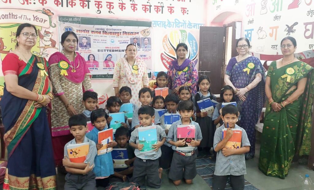 लायंस क्लब बिलासपुर मिडटाउन ने शनिचरी पड़ाव स्थित शासकीय बालमन्दिर एवं प्राथमिक शाला में शिक्षण सामग्री बांटी। माइक्रो चेयरपर्सन लायन आरती अम्बष्ट जी ने बच्चों को शिक्षा के महत्व के विषय में बताया एवं बच्चों ने पहाड़ा कविताएँ सुनाई। क्लब के द्वारा बच्चों को बूंदी,सेव,चॉकलेट,बिस्किट,चिप्स एवं केले दिए गए। इस स्कूल की वर्तमान शिक्षिकाओं सम्माननीय प्रेमलता तिवारी जी एवं अनामिका राठौर जी का सम्मान किया गया उन्होंने बताया की ये स्कूल आजादी के पहले 1907 से संचालित है और आज भी शिक्षा प्रदान कर रहा है। इस अवसर पर जोन चेयरपर्सन लायन सुषमा तिवारी जी,माइक्रो चेयरपर्सन लायन संध्या पांडेय जी एवं अध्यक्ष लायन आरती साहू जी उपस्थित रही।