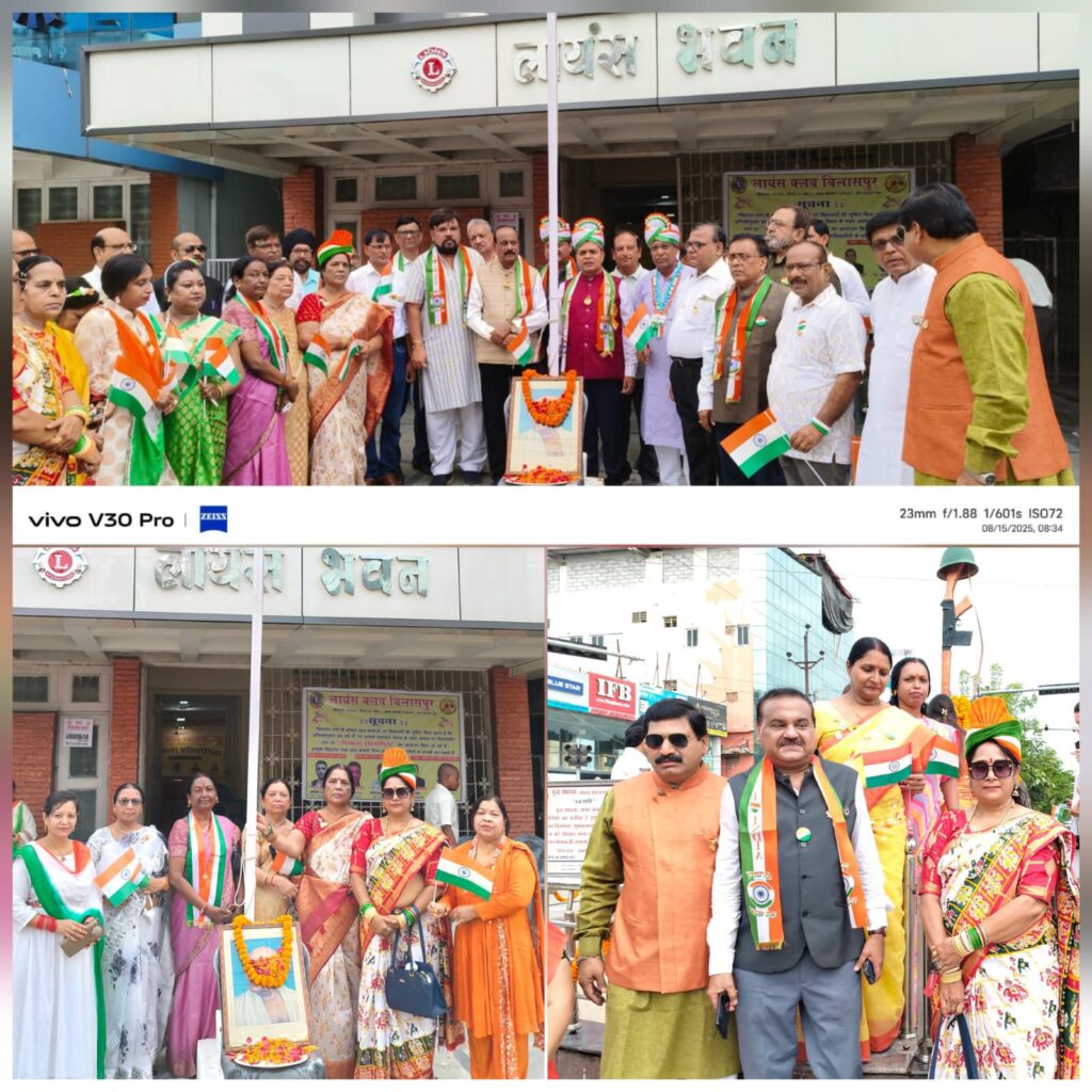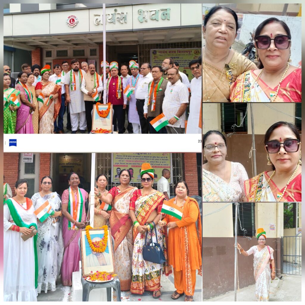 15 अगस्त स्वतंत्रता दिवस की 79 वर्षगांठ पर लायंस क्लब वसुंधरा ने लायंस भवन सीएमडी चौक में ध्वजारोहण किया जिसमें अध्यक्ष रश्मि लता मिश्रा सचिव अर्चना तिवारी डिस्ट्रिक्ट चेयरपर्सन शोभा त्रिपाठी, चांदनी सक्सेना, संजना मिश्रा, सीता तिवारी एवं बिलासपुर लायंस परिवार क्लब से सभी पदाधिकारी शामिल हुए ध्वजारोहण पश्चात सभी ने सीएमडी चौक स्थित है शहीदों को श्रद्धांजलि दी रीजन चेयरपर्सन बी महेश कुमार जी पास्ट डिस्ट्रिक्ट गवर्नर दिलीप भंडारी जी प्रीतपाल बाली जी अरविंद दीक्षित, आर सी देवेंद्र अग्रवाल संतोष पांडे डिस्ट्रिक्ट से आशीष अग्रवाल जी निशेष वर्मा विष्णु गुप्ता जोन चेयर पर्सन श्वेता शास्त्री आदि उपस्थित रहे