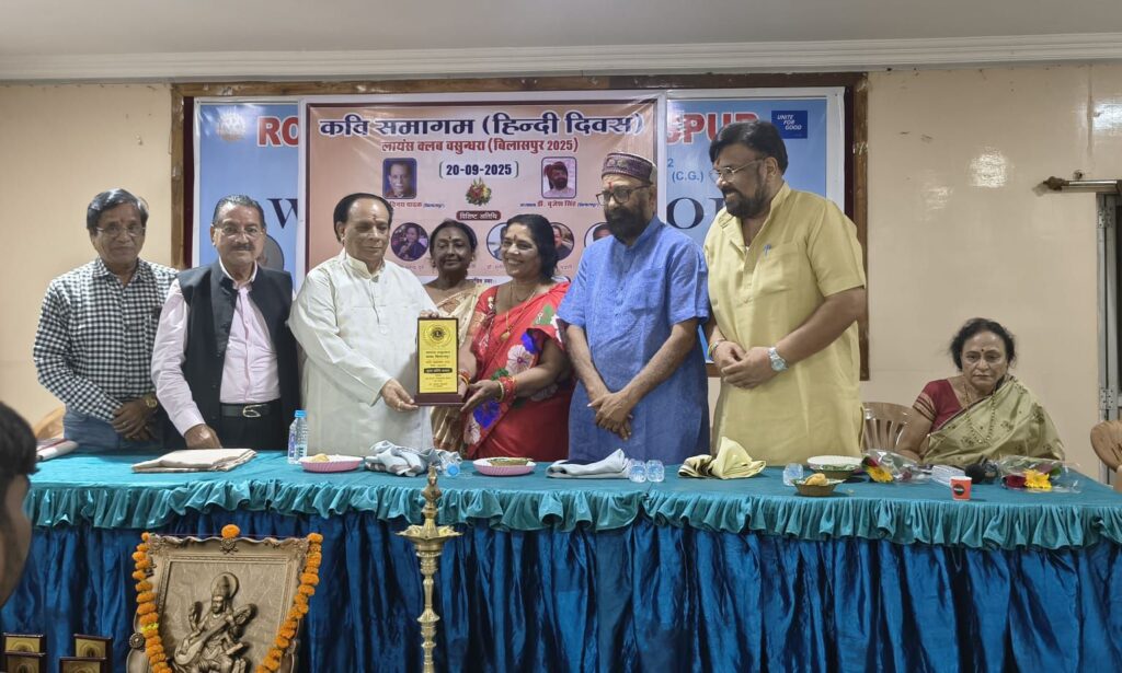 20/9/25 को हिंदी के प्रचार प्रसार में अपने योगदान की भूमिका का निर्वहन करते हुए लायंस क्लब वसुंधरा ने इस अवसर पर एक कवि सम्मेलन एवं साहित्यिक परिचर्चा का आयोजन किया आयोजक एमजे एफ डॉ रश्मिलता मिश्रा,और डिस्ट्रिक्ट चेयरपर्सन डॉ शोभा त्रिपाठी रहीं,जिसमें मुख्य अतिथि डॉक्टर विनय पाठक अध्यक्षता डॉ बृजेश सिंह की थी विशिष्ट अतिथि थे डॉक्टर गिरधारी लाल शर्मा शशि सुरेंद्र दुबे, पूर्व गवर्नर पीएमजेएफ दिलीप भंडारीजी,पू गवर्नर प्रीत पाल बाली, सुनील दत्त मिश्रा, रीजन चेयरपर्सन बुलुस महेश कुमार।