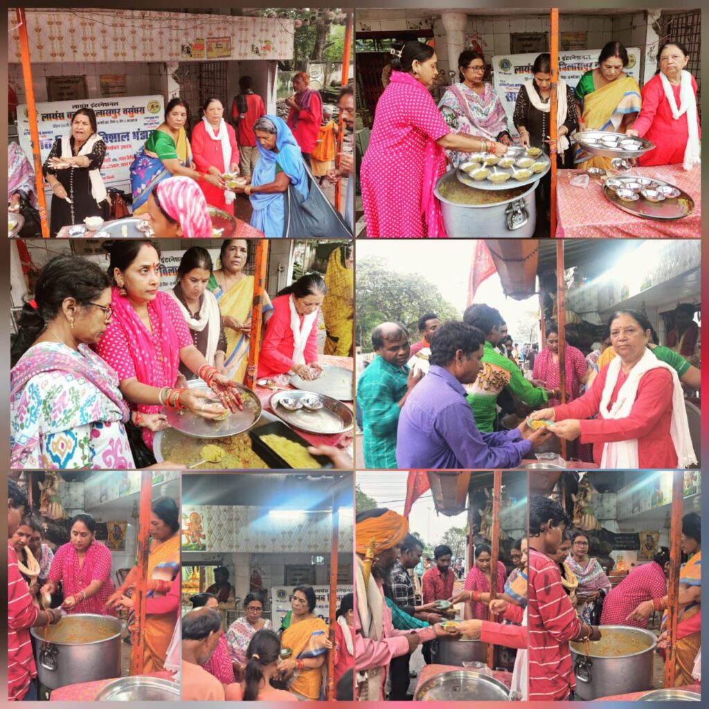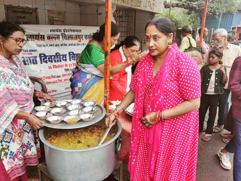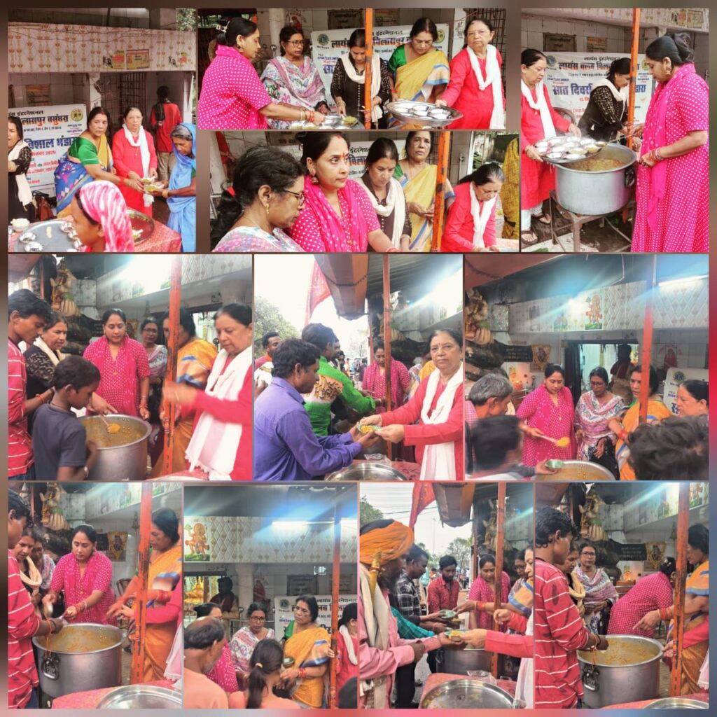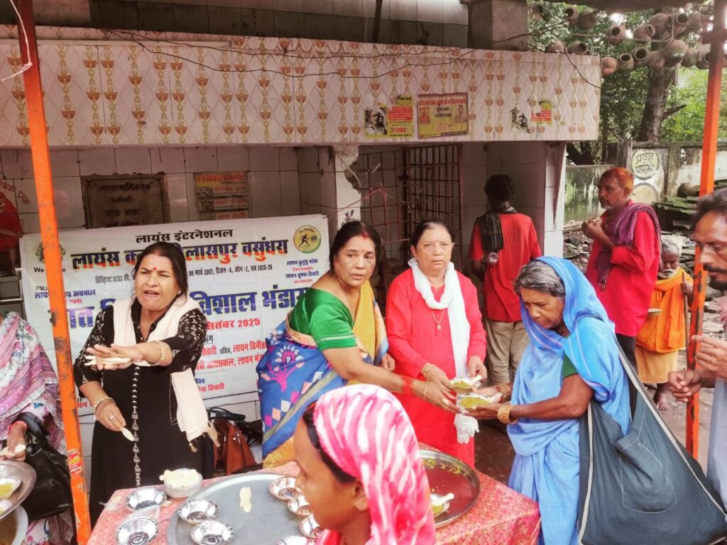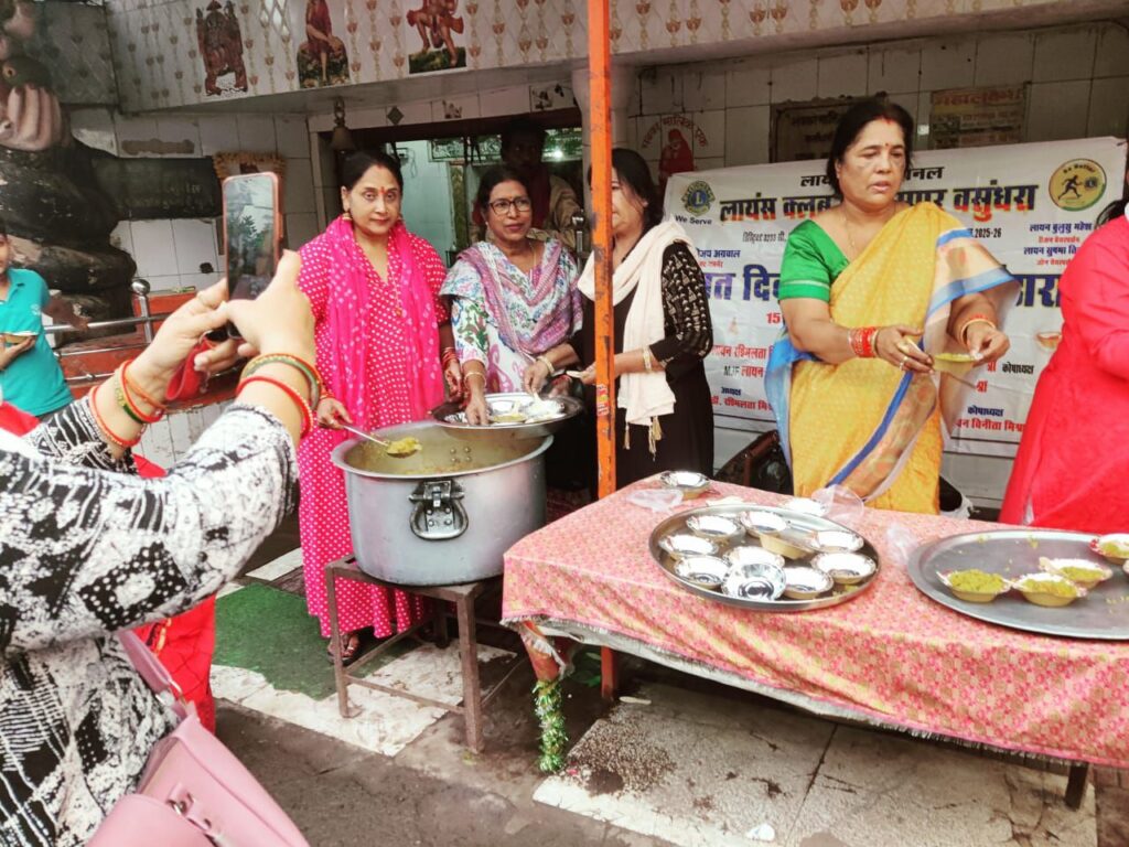 सेवा सप्ताह के अंतर्गत हर क्षेत्र में सेवाएं देने के साथ-साथ लायंस क्लब वसुंधरा ने रेलवे स्टेशन साई मंदिर में विशाल भंडारे का आयोजन किया इसका आयोजन अध्यक्ष रश्मि लता मिश्रा जी के द्वारा करवाया गया जिसमें स्टेशन एवं रास्ते में आने जाने वाले सभी धर्म निर्धन जरूरतमंद लोगों को खिचड़ी और चटनी का भोग प्रसाद दिया गया जिसमें सभी श्रद्धालु दर्शनार्थियों ने बहुत ही बढ़-चढ़कर हिस्सा लिया कम से कम 500 लोगों को खिचड़ी का प्रसाद वितरण किया गया जिसमें सचिव अर्चना तिवारी एमजेएफ संजना मिश्रा, उषा मुदलियार गायत्री कश्यप आदि ने उपस्थित होकर भोग प्रसाद वितरण में अपना सहयोग किया यह सेवा गतिविधि डिस्टिक प्रोजेक्ट हंगर के अंतर्गत आता है इस कारण वसुंधरा परिवार के द्वारा हर माह यह गतिविधि ऐसे क्षेत्रों में की जाती है जहां पर निर्धन जन गरीब परिवार को इनका लाभ मिल सके
