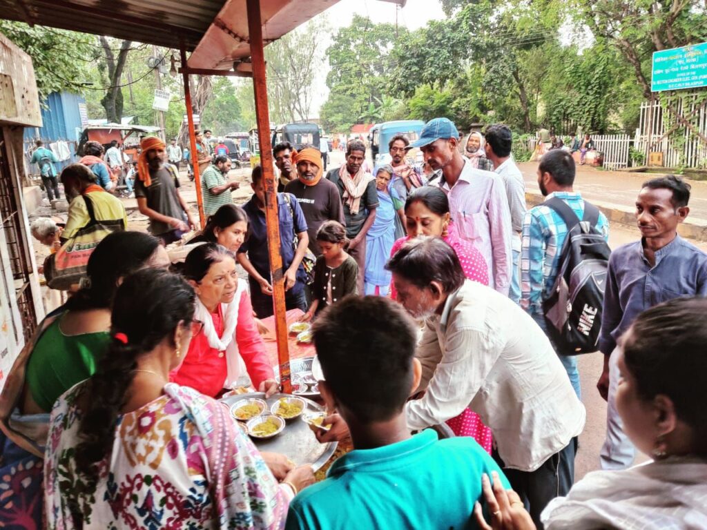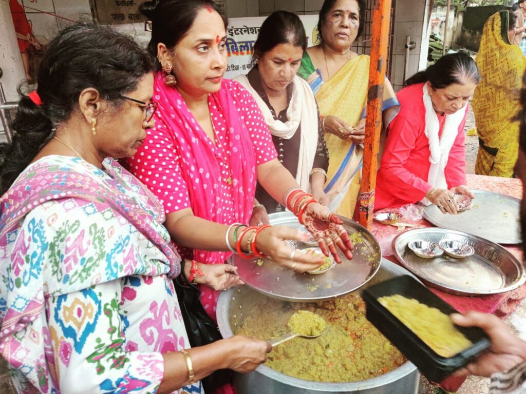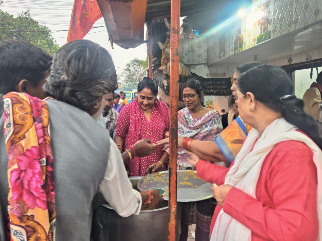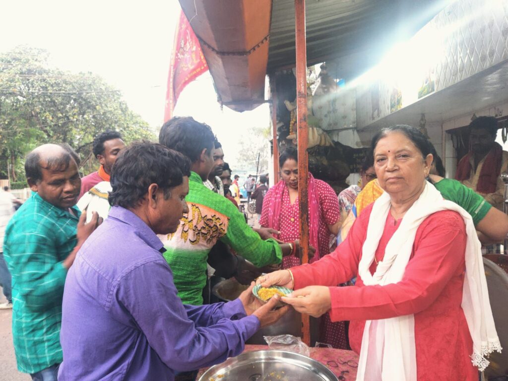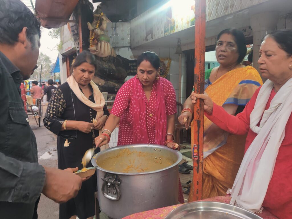सेवा सप्ताह के अंतर्गत हर क्षेत्र में सेवाएं देने के साथ-साथ लायंस क्लब वसुंधरा ने रेलवे स्टेशन साई मंदिर में विशाल भंडारे का आयोजन किया इसका आयोजन अध्यक्ष रश्मि लता मिश्रा जी के द्वारा करवाया गया जिसमें स्टेशन एवं रास्ते में आने जाने वाले सभी धर्म निर्धन जरूरतमंद लोगों को खिचड़ी और चटनी का भोग प्रसाद दिया गया जिसमें सभी श्रद्धालु दर्शनार्थियों ने बहुत ही बढ़-चढ़कर हिस्सा लिया कम से कम 500 लोगों को खिचड़ी का प्रसाद वितरण किया गया जिसमें सचिव अर्चना तिवारी एमजेएफ संजना मिश्रा, उषा मुदलियार गायत्री कश्यप आदि ने उपस्थित होकर भोग प्रसाद वितरण में अपना सहयोग किया यह सेवा गतिविधि डिस्टिक प्रोजेक्ट हंगर के अंतर्गत आता है इस कारण वसुंधरा परिवार के द्वारा हर माह यह गतिविधि ऐसे क्षेत्रों में की जाती है जहां पर निर्धन जन गरीब परिवार को इनका लाभ मिल सके