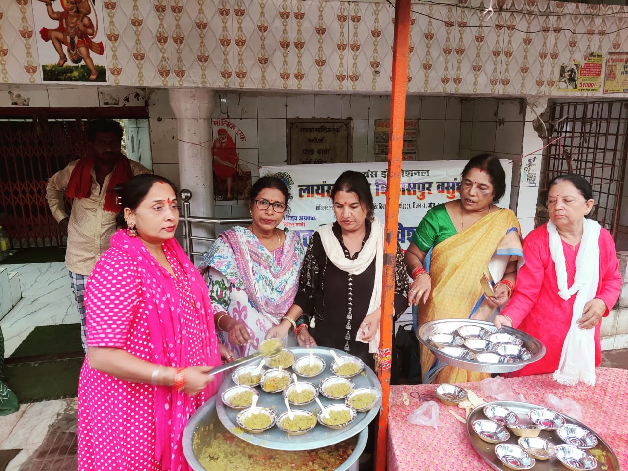 सेवा सप्ताह के अंतर्गत हर क्षेत्र में सेवाएं देने के साथ-साथ लायंस क्लब वसुंधरा ने रेलवे स्टेशन साई मंदिर में विशाल भंडारे का आयोजन किया इसका आयोजन अध्यक्ष रश्मि लता मिश्रा जी के द्वारा करवाया गया जिसमें स्टेशन एवं रास्ते में आने जाने वाले सभी धर्म निर्धन जरूरतमंद लोगों को खिचड़ी और चटनी का भोग प्रसाद दिया गया जिसमें सभी श्रद्धालु दर्शनार्थियों ने बहुत ही बढ़-चढ़कर हिस्सा लिया कम से कम 500 लोगों को खिचड़ी का प्रसाद वितरण किया गया जिसमें सचिव अर्चना तिवारी एमजेएफ संजना मिश्रा, उषा मुदलियार गायत्री कश्यप आदि ने उपस्थित होकर भोग प्रसाद वितरण में अपना सहयोग किया यह सेवा गतिविधि डिस्टिक प्रोजेक्ट हंगर के अंतर्गत आता है इस कारण वसुंधरा परिवार के द्वारा हर माह यह गतिविधि ऐसे क्षेत्रों में की जाती है जहां पर निर्धन जन गरीब परिवार को इनका लाभ मिल सके