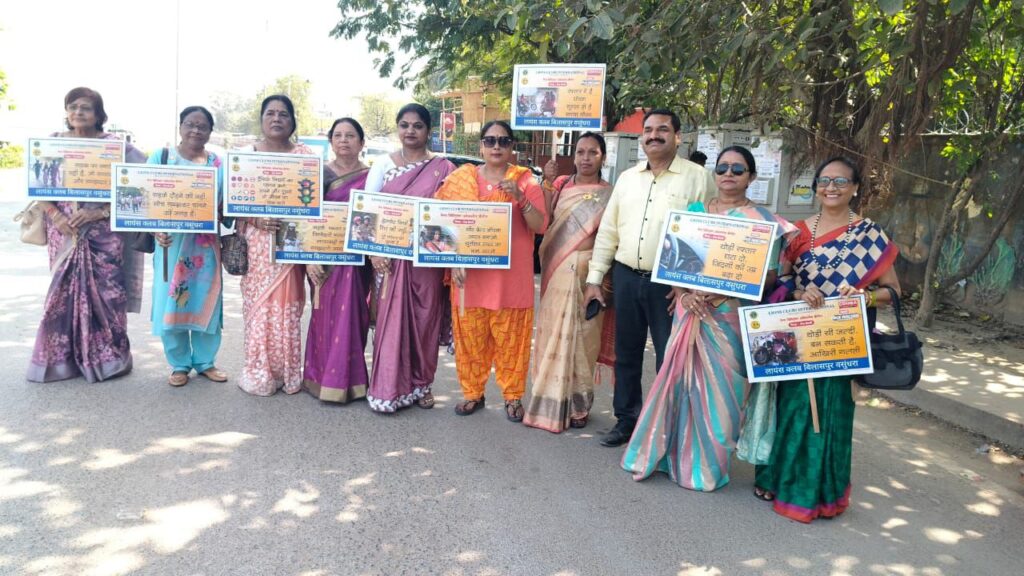 डिस्ट्रिक्ट प्रोजेक्ट रोड सेफ्टी के अंतर्गत लायंस क्लब वसुंधरा ने ट्रैफिक नियमों का पालन करने एवं सड़क सुरक्षा अभियान के अंतर्गत एक रैली निकाली यह रैली रिवर व्यू राम सेतु से लेकर कंपनी गार्डन तक निकाली गई जिसमें हर चौक चौराहे सड़क पर आने जाने वाले बिना हेलमेट टू व्हीलर चालकों को फोर व्हीलर में बिना सीट बेल्ट मोबाइल में बात करते हुए ड्राइविंग नशे की हालत में ड्राइविंग आदि इन सब बातों को ध्यान में रखते हुए उनके दुष्परिणाम से आम जनता को अवगत कराया रैली के इस कार्यक्रम में रीजन फोर से लायंस क्लब वसुंधरा होस्ट रहा क्लब की अध्यक्ष रश्मि लता मिश्रा जी, एमजेएफ संजना मिश्रा, सचिव अर्चना तिवारी, डिस्ट्रिक्ट चेयर पर्सन सुधा परिहार,किरण बाजपेई रीजन चेयरपर्सन बी महेश कुमार जी, जोन चेयर पर्सन श्वेता शास्त्री, श्रीजन क्लब के मेंबर माइक्रो चेयरपर्सन वी श्रद्धा राव एवं अन्य क्लब के मेंबर शामिल हुए सड़क जागरूकता अभियान के अंतर्गत सभी ने आम जनता को महत्वपूर्ण जानकारियां दी और जनसाधारण से अपील की ,कि ट्रैफिक नियमों का पालन करिए और सुरक्षित जीवन यापन करिए स्लोगन एवं पंपलेट के जरिए चौक चौराहे पर चलने वाले सभी लोगों को रोककर उन्हें दिशा निर्देश दिए गए एवं उनसे विनम्र अनुरोध किया गया कि ट्रैफिक नियमों का पालन करते हुए सुरक्षित ड्राइविंग करिए एवं अपना और अपने परिवार को सुरक्षित रखें