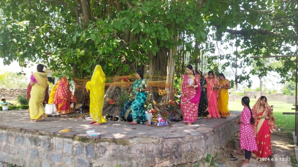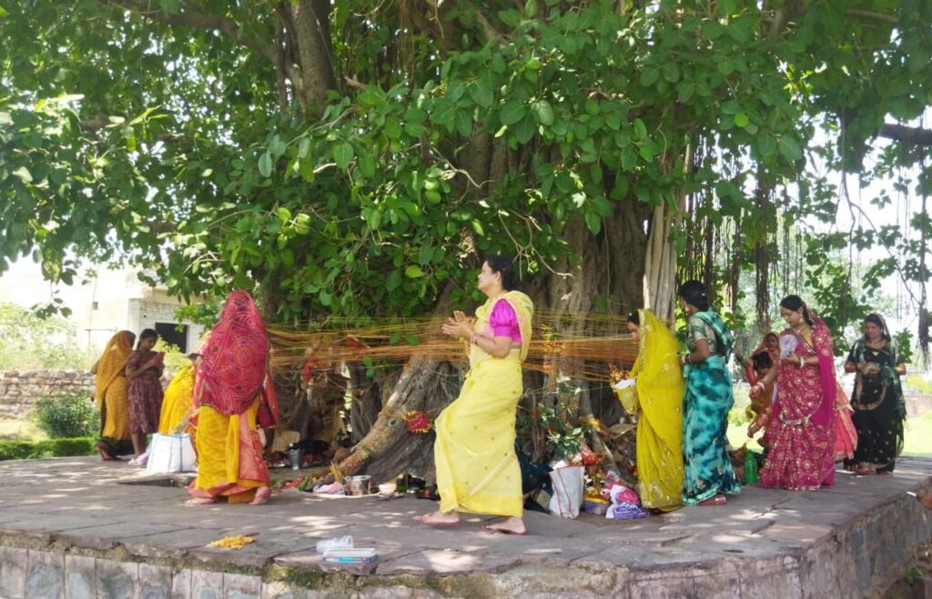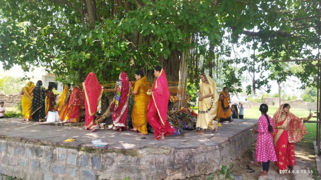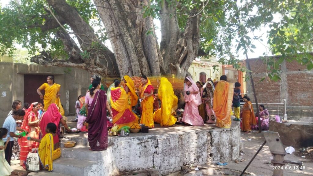 धार्मिक नगरी रतनपुर में आज वट सावित्री व्रत पूजा के उपलक्ष में नगर की सभी सुहागिन महिलाएं सोलह सिंगार से युक्त दमकते रूप में आज वट सावित्री पूजा करने के लिए बरगद के पेड़ के नीचे इकट्ठा हुए, और अपने पति के दीर्घायु व उत्तम स्वास्थ्य तथा सुख समृद्धि की कामना के साथ हाथ में पूजा की थाली लिए हुए अखंड सौभाग्य के खातिर यह वट सावित्री व्रत की विधि विधान से पूजा अर्चना की, इस पूजा में वट वृक्ष के नीचे यमराज सावित्री और सत्यवान की मूर्ति स्थापित करके हाथ में जल, फूल ,अक्षत ,मौली धागा ,रक्षा सूत्र व भिगोए हुए चने तथा धूप दीप आदि अर्पित किए, उसके बाद सभी सुहागिन महिलाएं वटवृक्ष में मौली धागा लपेटते हुए 108 बार परिक्रमा किए तथा वटवृक्ष की तरह अपने पति के अटल, अजर ,अमर रहने की कामना की और परिक्रमा के बाद हाथ में भीगे हुए चने को लेकर सावित्री और सत्यवान की कथा का श्रवण किये।