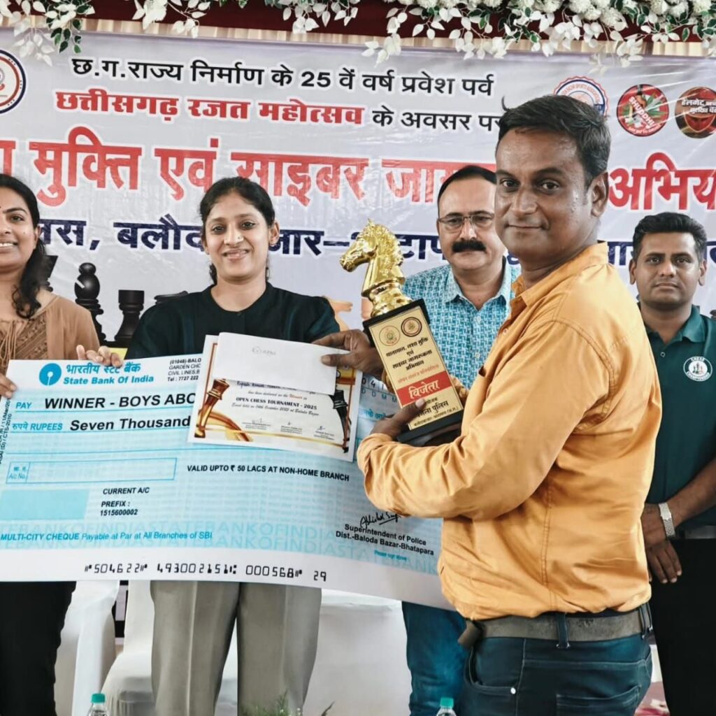 बलौदाबाजार। जिले में पहली बार ओपन शतरंज प्रतियोगिता का आयोजन भव्य रूप से इंडोर स्टेडियम बलौदाबाजार में किया गया। यह आयोजन जयंती महोत्सव एवं यातायात, नशामुक्ति, साइबर एवं वन विभाग के संयुक्त तत्वावधान में संपन्न हुआ। कार्यक्रम का शुभारंभ जिला पंचायत अध्यक्ष आकांक्षा गोलू जायसवाल, कलेक्टर दीपक सोनी, पुलिस अधीक्षक भावना गुप्ता, डीएफओ गणवीर धम्मशील, नगर पालिका अध्यक्ष अशोक जैन, जनपद अध्यक्ष सुलोचना यादव, छत्तीसगढ़ प्रदेश शतरंज संघ के राज्य सचिव हेमंत खुटे एवं अन्य अतिथियों ने दीप प्रज्ज्वलन कर किया। प्रदेशभर से 200 खिलाड़ियों ने इस ऐतिहासिक टूर्नामेंट में हिस्सा लिया। प्रतियोगिता अंतर्राष्ट्रीय स्विस लीग पद्धति से खेली गई और सर्वाधिक अंकों के आधार पर विजेताओं का चयन किया गया। इस मौके पर जिला शतरंज संघ बलौदाबाजार-भाटापारा को आधिकारिक रूप से छत्तीसगढ़ प्रदेश शतरंज संघ से संबद्धता भी प्रदान की गई।