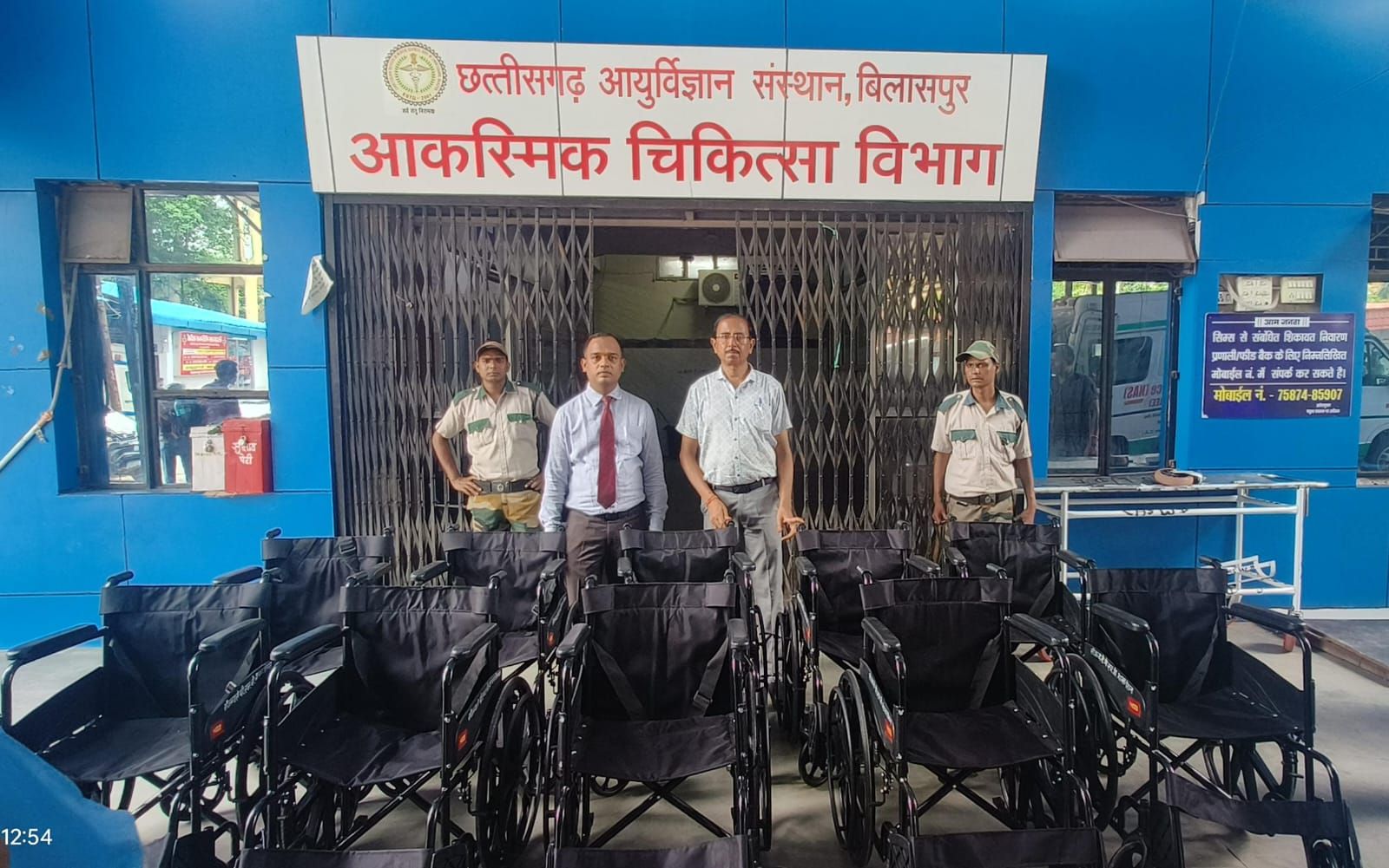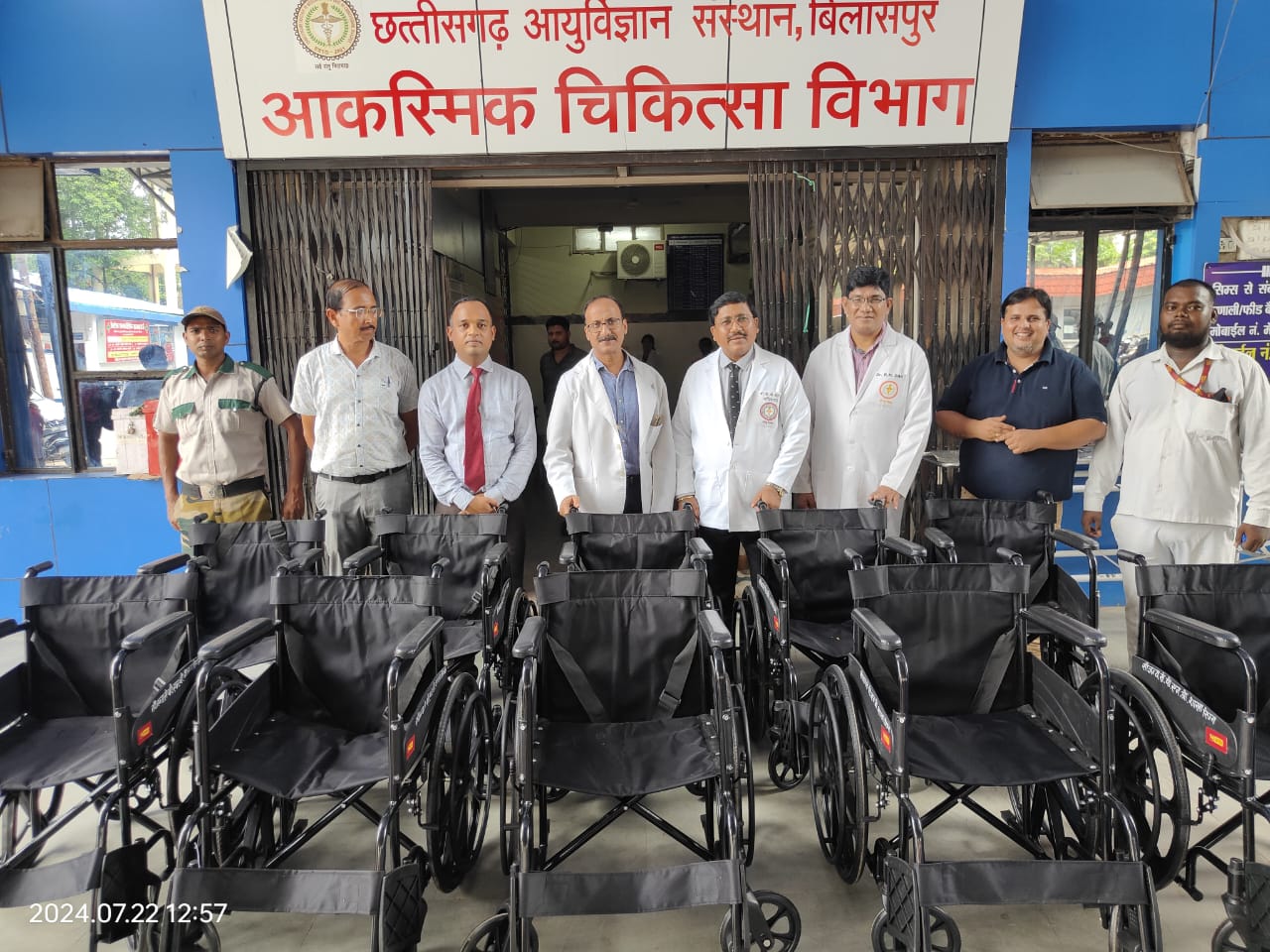 छत्तीसगढ़ आयुर्विज्ञान संस्थान बिलासपुर में लाचार बेबस मरीजो की सहायता हेतु पीएनबी ने बढ़ाया कदम। पंजाब नैशनल बैंक बिलासपुर मंडल प्रमुख श्री जगदीश राय के निर्देश पर उपमंडल प्रमुख श्री नायक, ग्राहक अर्जन केंद्र के वरिष्ठ प्रबंधक ललित अग्रवाल व सिम्स शाखा प्रमुख अवनीश पांडेय ने डीन सिम्स डॉ के के सहारे, एम एस डॉ सुजीत कुमार नायक व वरिष्ठ चिकित्सक डॉ आर के दास को दस नग व्हीलचेयर भेंट कर जरूरत मंद मरीजों की सहायता हेतु छोटा सा कदम उठाया हैं। मंडल प्रमुख श्री राय ने बताया कि पीएनबी सदैव जरूरतमंद की मदद के लिए अग्रसर रहता हैं।