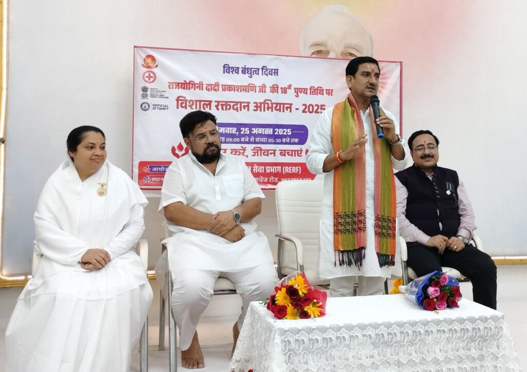 सेवाकेन्द्र संचालिका बीके स्वाति दीदी ने कहा कि रक्तदान को हम “महादान” कहते हैं, क्योंकि यह दान किसी गरीब या अमीर को नहीं, बल्कि इंसान को बचाने के लिए किया जाता है। राजयोग भवन में सुबह 8:30 बजे से रात्रि 8:00 बजे तक विशाल रक्तदान महा अभियान चला। दीदी ने बताया विशाल रक्तदान कार्यक्रम का स्लोगन है “रक्तदान – विश्व बंधुत्व का अभियान”। इस रक्तदान शिविर के मुख्य चार उद्देश्य हैं। एक तो दादी जी के प्रेम और आपसी प्यार की जो प्रति मूर्ति थी। दादी जी स्व सेवा से बढ़कर विश्व सेवा का लक्ष्य था उनके प्रति आदर व्यक्त करना। दूसरा भारत देश में जो सुरक्षित रक्त की आवश्यकता है उसे पूर्ति करना है। कहते हैं प्रति 2 सेकंड में किसी को खून की आवश्यकता पड़ती है। तीसरा नि:स्वार्थ दान जो कि मानवता और देशभक्ति का सबसे बड़ा स्वरूप है, उसे प्रोत्साहित करना है और चौथा युवाओं में एक नियमित रूप से स्वेक्षिक रक्तदान की संस्कृति का निर्माण करना है।