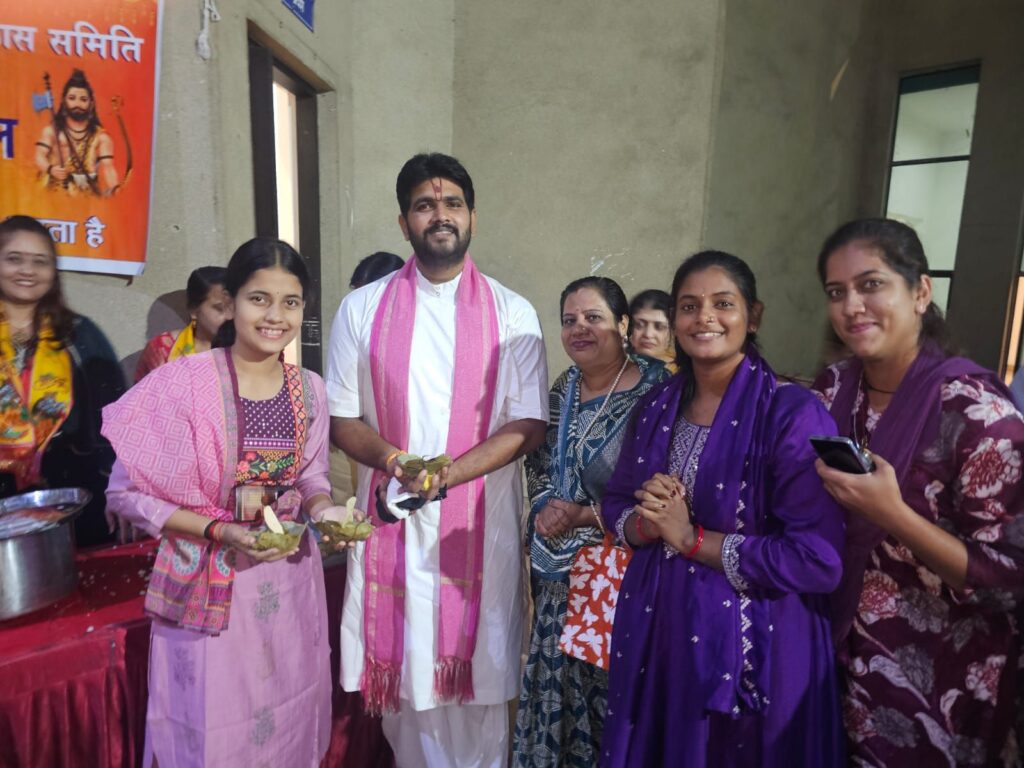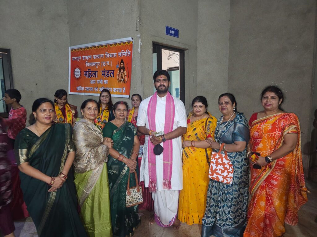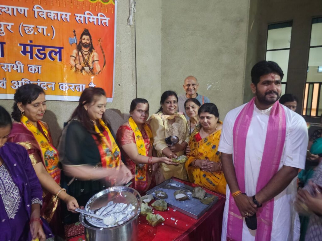 पितृ पक्ष के अवसर पर स्वर्गीय लखीराम अग्रवाल सभा भवन बिलासपुर में वर्मा परिवार, मुकेश नामदेव, तथा यश मिश्रा जी के सहयोग से श्रीमद् भागवत कथा का आयोजन किया जा रहा है इस श्रीमद् भागवत कथा के आचार्य अमर कृष्णा शुक्ला जी के द्वारा बहुत ही शानदार भागवत कथा की जा रही है और लोग इसका खूब नाच गा करके आनंद उठा रहे हैं इसी कड़ी में समाज सेवा के क्षेत्र मैं अग्रणी संस्था सनाडय ब्राहमण महिला मंडल बिलासपुर के द्वारा शानदार खिचड़ी तथा खीर का प्रसाद का वितरण समाज के द्वारा किया गया/ब्राह्मण समाज की महिलाओं के द्वारा जो प्रसाद सेवा की जा रही थी उसको देख महाराज जी ने भी खूब प्रशंसा की तथा प्रसाद वितरण केंद्र में स्वयं आकर प्रसाद वितरण में सहयोग किया/