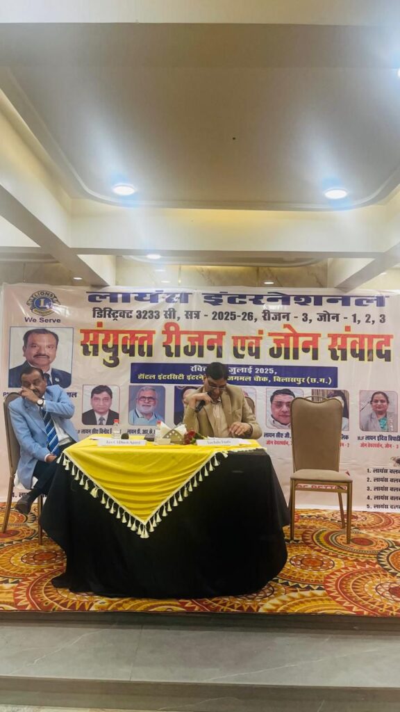 होटल इटरसिटी में लायस क्लब के रिजन 3 के प्री रीजन और जोन सऺवाद कार्यक्रम का आयोजन हुआ। रिजन 3 के चेयरपर्सन लायन दिनेश अग्रवाल और रिजन एडवाइजर लायन विनोद मित्तल, जोन 1 के चेयरपर्सन लायन जी एल जैन, जोन 2 के चेयरपर्सन लायन एकता मलिक, जोन 3 के चेयरपर्सन लायनेस इदिंरा त्रिपाठी के साथ सभी जोन के क्लब के पी एस टी सम्मिलित हुए। सर्व प्रथम अतिथियों ने मेलियन जोन्स के छाया चित्र पर माल्यार्पण और दीप प्रज्ज्वलित कर कार्यक्रम का शुभारंभ किया। स्वागत भाषण रीजन सचिव लायन शैलेष बाजपेयी जी ने किया। सभी लायन क्लब के सदस्यों ने एक दूसरे के साथ अपने सेवा गतिविधियों का शेयर करते हुए आने वाले महिनों में लायऺस क्लब के द्वारा की जाने वाले सेवा गतिविधियों की जानकारी प्रदान किया। लायऺस क्लब बिलासपुर के अध्यक्ष लायन डॉ हर्ष पान्डेय ने किया क्लब के सेवा गतिविधियों की विस्तार पूर्वक जानकारी प्रदान किया। रिजन चेयरपर्सन लायन दिनेश अग्रवाल जी ने अपने उद्बोधन में सभी क्लब के अध्यक्ष, सचिव, और कोषाध्यक्ष को मार्गदर्शन प्रदान किया। इस प्री रिजन कार्यक्रम में सम्मिलित होने वाले लायऺस क्लब में लायऺस क्लब बिलासपुर से रीजन एडवाइजर लायन सी ए विनोद मित्तल लायन हर्ष पान्डेय, लायन रमेश अग्रवाल, लायन डॉ राजेश दुबे, लायन उमेश मुरारका, लायन हरदीप सलुजा, लायन मनीष चन्देल, लायऺस क्लब सम्मान से गुजन सिंह, लायन क्लब गोल्ड से प्रियंका जैन, लायऺस क्लब वुमन से साइदा वनक, लायऺस क्लब रायल से बरखा सिंह, लायऺस क्लब क्लासिक प्लस से प्रीति गुप्ता सहित रीजन 3 के समस्त लायऺस क्लब के पदाधिकारी उपस्थित थे। अत में रीजन सचिव लायन शैलेष बाजपेयी जी ने आभार प्रकट किया।