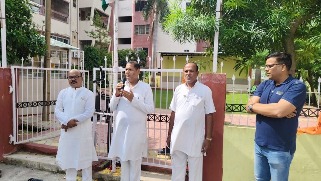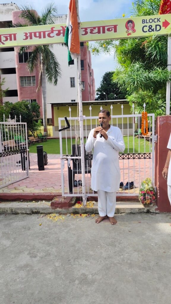 बिलासपुर क्रांति नगर के पूजा अपार्टमेंट में आज छत्तीसगढ़ योग आयोग के पूर्व सदस्य रविंद्र सिंह ने ध्वजारोहण किया। उपस्थित जन समुदाय को संबोधित करते हुए श्री ठाकुर जी ने कहा कि देश में व्याप्त आतंकवाद नक्सलवाद को हम सब खत्म कर एकता अखंडता व भाईचारा को बनाये रखें। यह हम सब की जिम्मेदारी है। वही देश के आजादी में महात्मा गांधी जवाहरलाल नेहरू सुभाष चंद्र बोस व भगत सिंग जैसे महान विभूतियां के त्याग व संघर्ष को याद करते हुए तिरंगे का मान सम्मान को हम हमेशा बरकरार रखेंगे यह संकल्प लेकर आज यहां से जाये। कार्यक्रम में प्रमुख रूप से शैलेष कुमार मिश्रा,आनंद नोपानी, अनिल लच्छूका, प्रदीप चौधरी, कैलाश मित्तल, सी.डी दीवान, ढालू अग्रवाल राजकुमार खेत्रपाल, टे सी इब्राहिम मुकेश अग्रवाल, राजेश अग्रवाल, श्रीमती राजश्री दीवान, सुमन जायसवाल, अनार देवी नोपानी, सरोज अग्रवाल, रेनू नोपानी, देवकन्या मालपानी,त्रिवेणी लक्षुका,शोभा अग्रवाल,अरुण मित्तल आदि उपस्थित रहे।