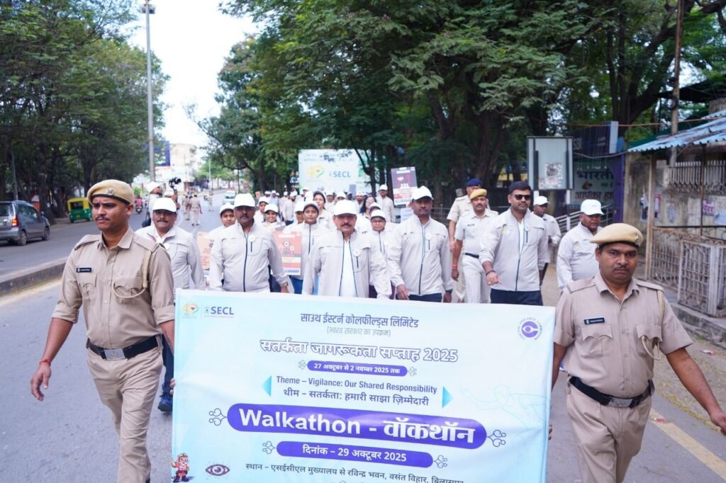 सतर्कता जागरूकता सप्ताह 2025 अंतर्गत बुधवार  को एसईसीएल में वॉकथॉन का आयोजन किया गया जिसमें 100 से अधिक अधिकारी-कर्मचारियों ने रैली में हिस्सा लेकर सतर्कता जागरूकता का संदेश दिया।